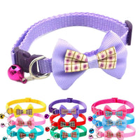 Small Dog Collar With Bell,Soft Nylon Identification Purple Cat Collar Girl Puppy Collar With Bow Tie Adjustable Buckle For Xxs