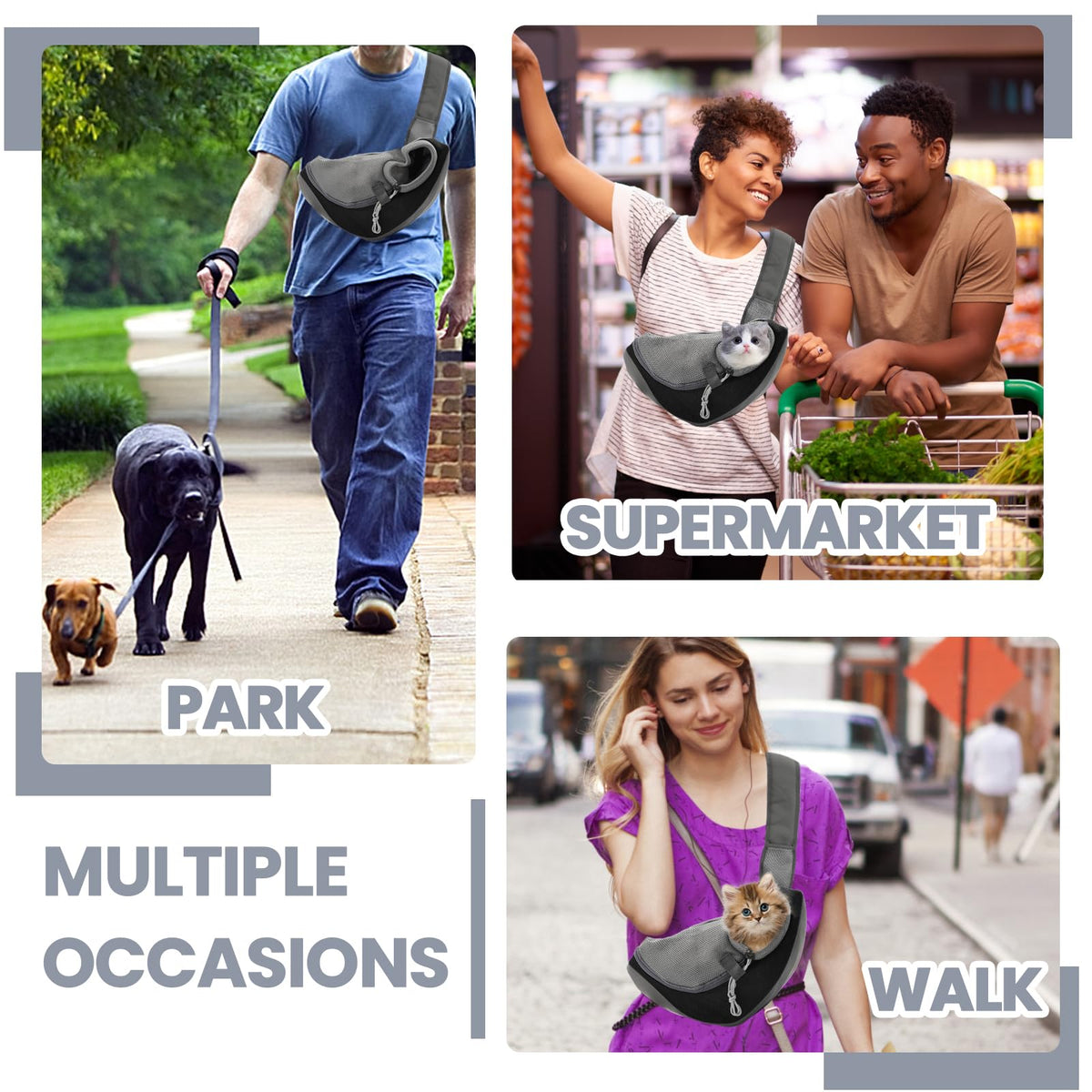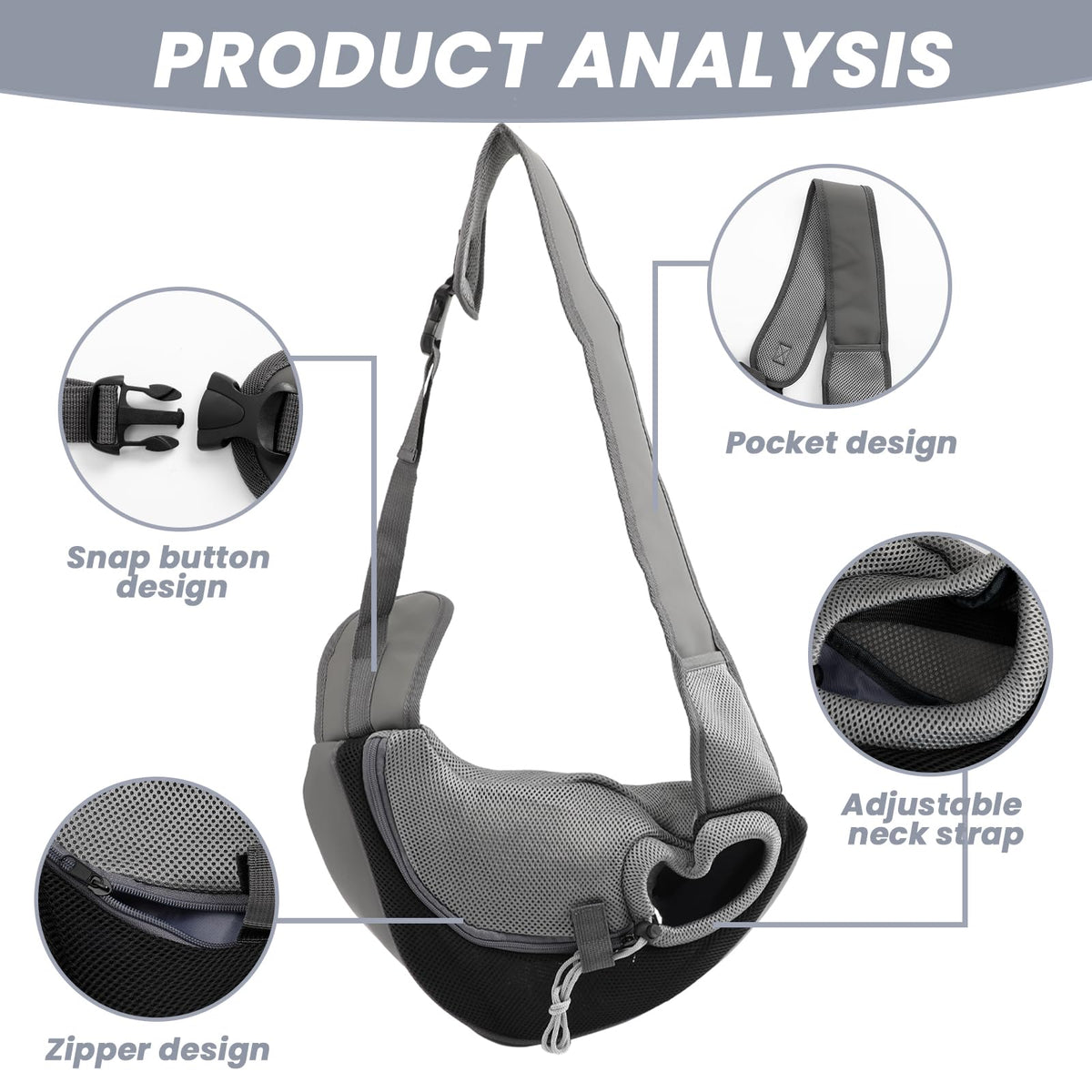Small Dog Sling Carrier, Mesh Adjustable Pet Sling Carrier Zipper Pocket Breathable Hand Free For Small Medium Dogs Cats Outdoor