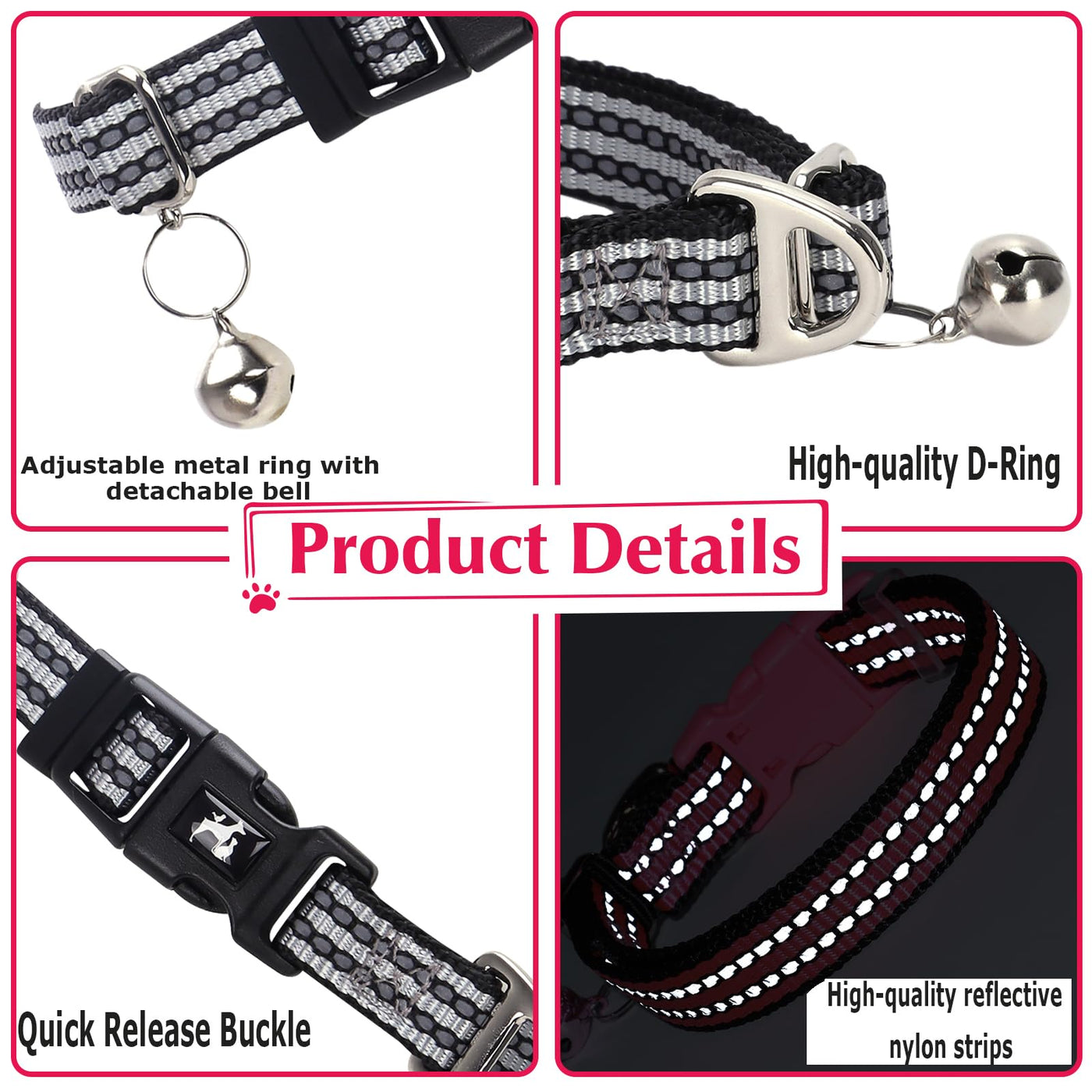 Maowuwujoz Maowuwujoz Reflective Dog Collar With Bell - Hypoallergenic Small Puppy Collar For Night Walks, Adjustable Soft Nylon Collar For Dogs & Kittens Puppy-Safe Nighttime Visibility Integrated With Ultra-Reflective Nylon Webbing And A Jingling Bell, This Collar Ensures 360 Visibility And Audible Tracking For Small Breeds During Evening Walks Or Backyard Play. Double Safety Alert System Reflective Nylon Webbing Glow Up To 200M Under Lights Gentle Bell Chime Helps Locate Curious In Dark Yards Or Parks. Durable Metal Hardware For Active Puppies Heavy-Duty Zinc Alloy Buckle + Reinforced D-Ring Withstand Tugging And Scratching, Perfect For Growing Dogs,High-Energy Adventures.