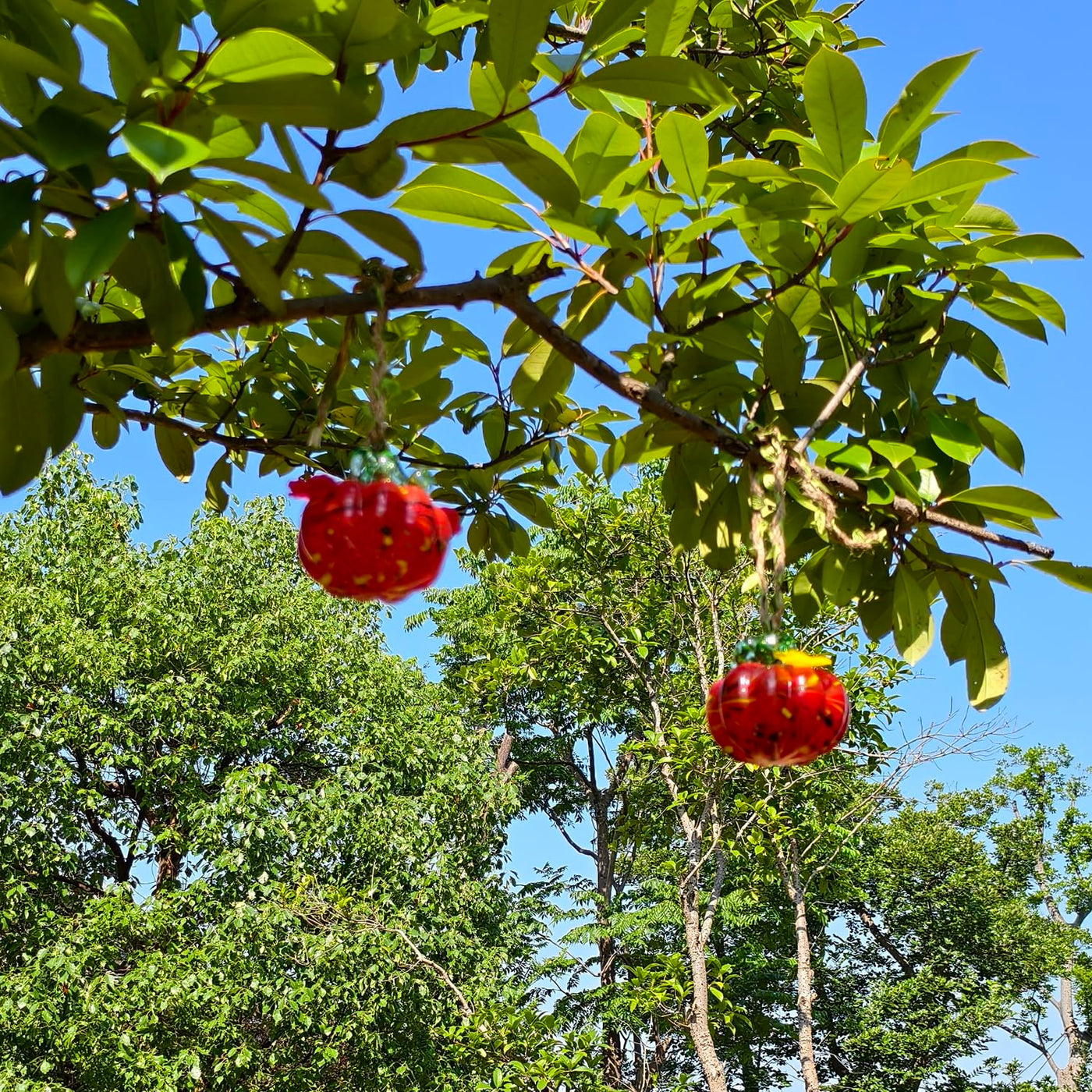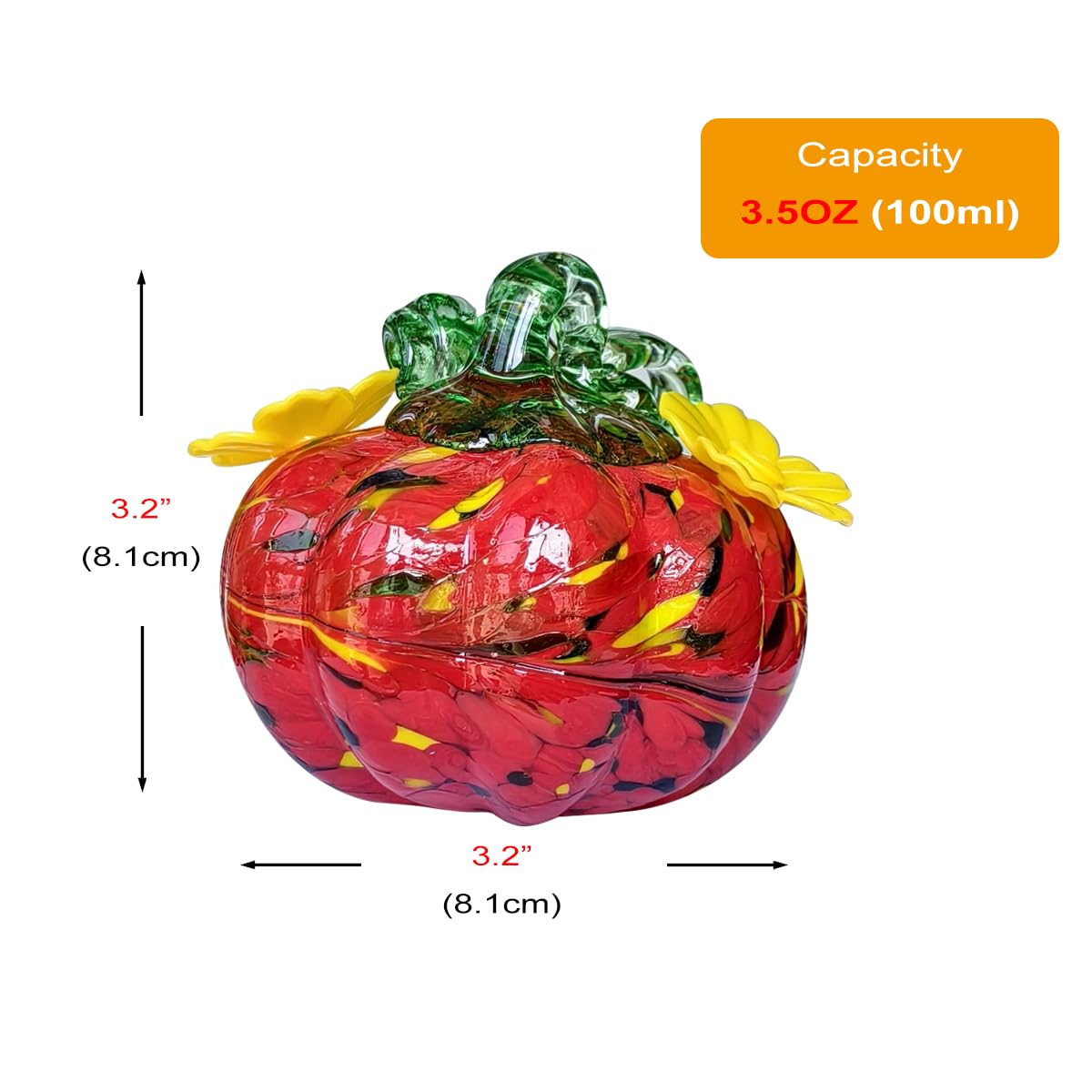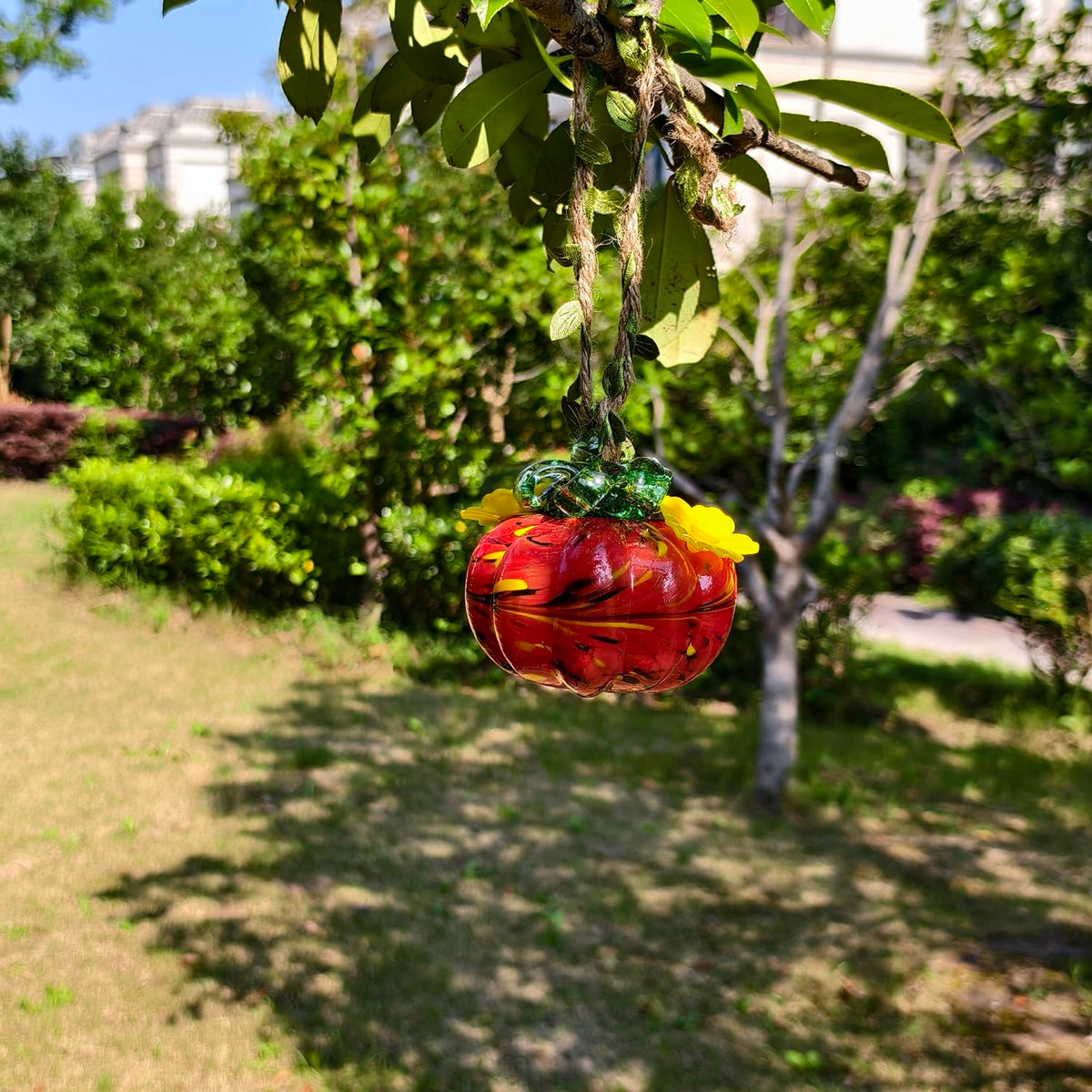 Small Glass Hummingbird Feeders for Outdoors Hanging - 2PC X Red Hand Blown Glass Pumpkin Nectar Feeding, 2 Flowers Feeding Port
