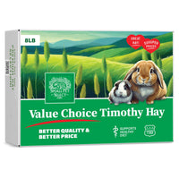 Small Pet Select Value Choice Timothy Hay is the perfect option for pet owners who want to provide high-quality hay at an unbeatable value. We believe that every small pet deserves an unlimited supply of fresh, nutritious hay, which is why weve created an affordable option without any unnecessary frills or fancy packaging. Our hay is an essential part of your pets diet, supporting their digestive health and overall well-being. Packed with fiber, this natural hay helps maintain a healthy gut while also promoting proper dental care by preventing overgrown teeth. With Value Choice Timothy Hay, you can give your guinea pig, rabbit, hamster, bunny, or chinchilla the best without breaking the bank. Each box of Value Choice Timothy Hay is carefully hand-packed with love, ensuring your pet receives only the freshest, highest-quality hay. Unlike mass-produced options that rely on heavy machinery and plastic packaging, we take a hands-on approach to maintain the integrity of our hay. We believe in sustainability, which is why we package our hay in large, recyclable, compostable boxes rather than plastic bags. Our eco-friendly commitment means you can feel good about choosing a product that not only benefits your pet but also helps reduce environmental impact. By prioritizing freshness and quality, we make sure your furry companion always has access to the nutritious hay they need for a happy and healthy life. Grown and harvested in the USA, our Value Choice Timothy Hay is selected with care from the best fields along the West Coast. Each season, we personally inspect hundreds of farms, working closely with farmers to ensure only the finest hay makes it into your pets diet. As a small, family-owned company, we are dedicated to providing exceptional service and superior products that put your pets health first. Whether youre looking for an affordable way to keep a steady supply of fresh hay or want to support a company that values quality and sustainability, Small Pet Select Value Choice Timothy Hay is the perfect choice for your small animals daily needs. Each box of Value Choice Timothy Hay is carefully hand-packed with love, ensuring your pet receives only the freshest, highest-quality hay. Unlike mass-produced options that rely on heavy machinery and plastic packaging, we take a hands-on approach to maintain the integrity of our hay. We believe in sustainability, which is why we package our hay in large, recyclable, compostable boxes rather than plastic bags. Our eco-friendly commitment means you can feel good about choosing a product that not only benefits your pet but also helps reduce environmental impact. By prioritizing freshness and quality, we make sure your furry companion always has access to the nutritious hay they need for a happy and healthy life. Grown and harvested in the USA, our Value Choice Timothy Hay is selected with care from the best fields along the West Coast. Each season, we personally inspect hundreds of farms, working closely with farmers to ensure only the finest hay makes it into your pets diet. As a small, family-owned company, we are dedicated to providing exceptional service and superior products that put your pets health first. Whether youre looking for an affordable way to keep a steady supply of fresh hay or want to support a company that values quality and sustainability, Small Pet Select Value Choice Timothy Hay is the perfect choice for your small animals daily needs.