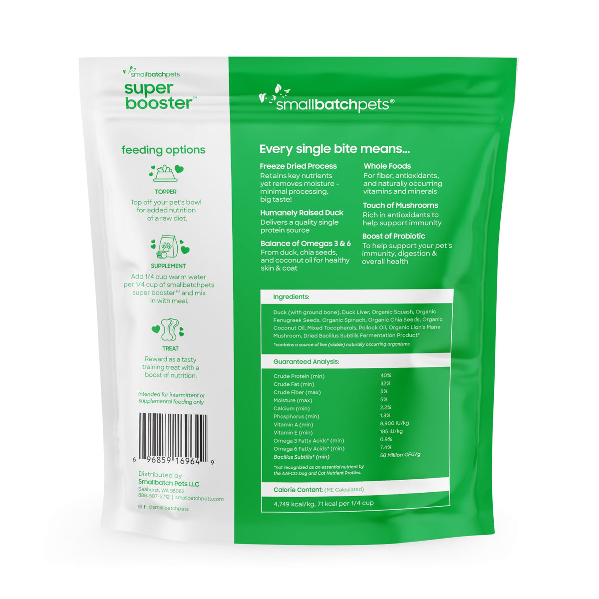 smallbatch Pets Freeze-Dried Super Booster Duck Bites for Dogs & Cats, 7 oz, Made in The USA, Organic Produce, Humanely Sourced