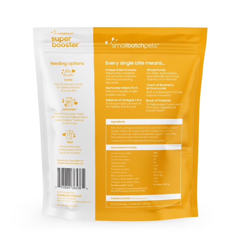 smallbatch Pets Freeze-Dried Super Booster Pork Bites for Dogs & Cats, 7 oz, Made in The USA, Humanely Raised Single Protein Sou