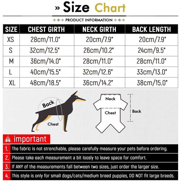 Size XS: chest 28cm/11.0in; neck 20cm/7. 9in; Back: 20cm/7.85in; for pet 1-3lbs | Polyester & cotton, warm and cozy, machine-washable for easy care | Be a nice gift for your baby, we are sure they will love it | Available for small size pet, such Cat, Chihuahua, toy Poodle, Pomeranian, Yorkshire Terrier, Bichon Fries, Cocker Spaniel. | This clothes runs small a little. Please take a measurement of your dog or cat before purchasing ! ! !