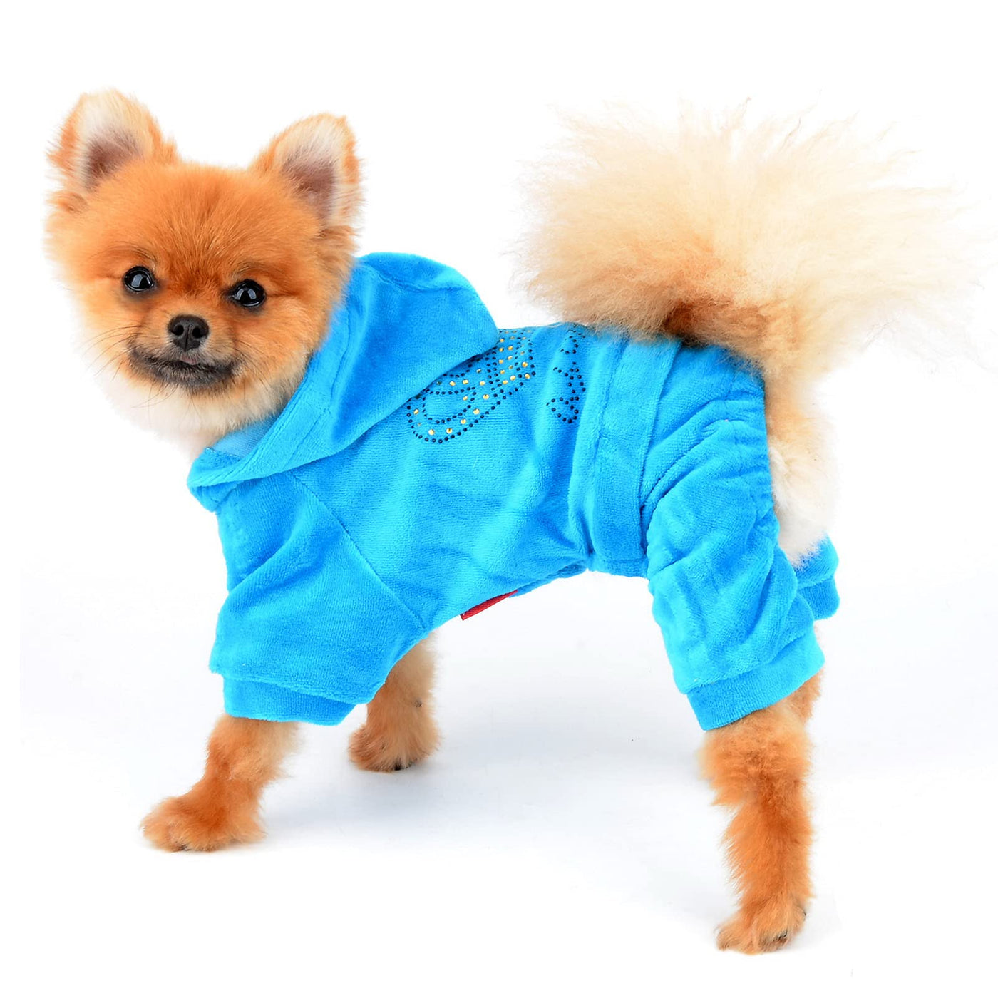 Smalllee_Lucky_Store Pet Clothes For Small Dog Cat Soft Velvet Crown Jumpsuit Coat Hooide Pajamas Tracksuit Blue Xl