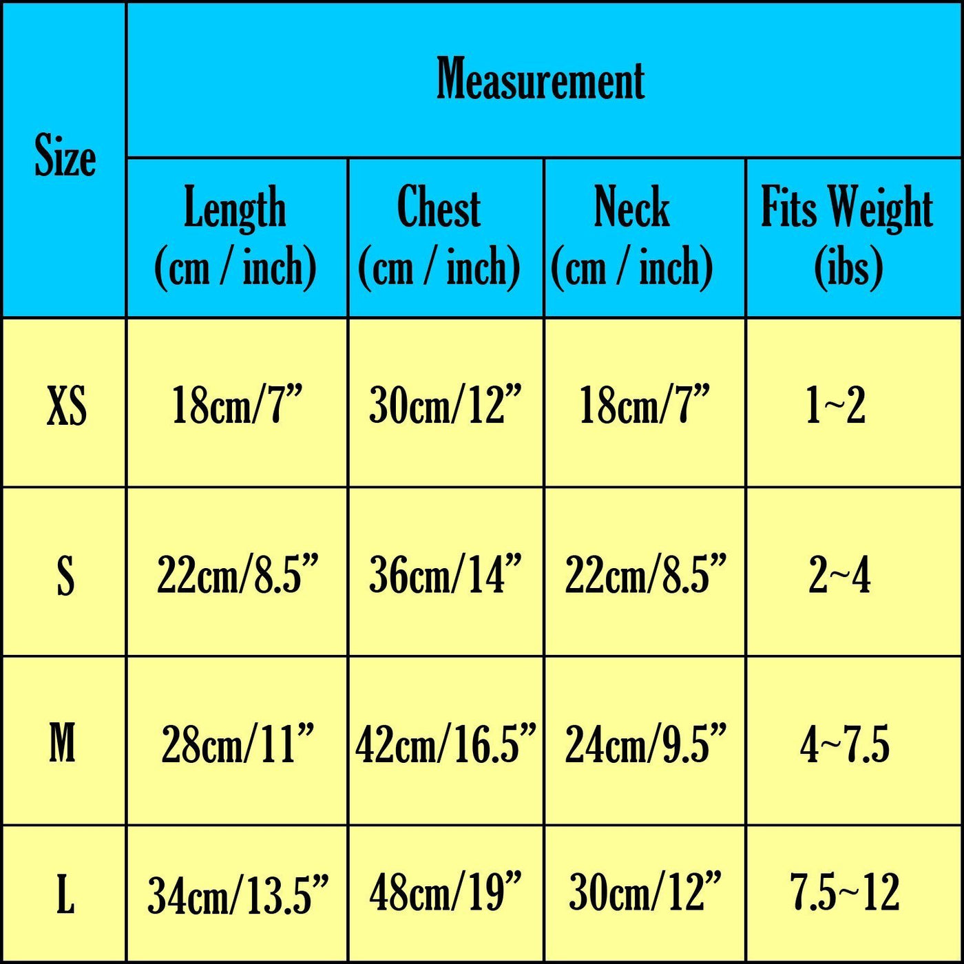 2.Your baby usually wears size S doesn't mean all size S will fit him/her. Different designers and manufacturers use their own size charts. So the measurements given in a size SMALL by manufacturer 'A' will be a size XS in manufacturer B's size chart. Don't buy a particular size because that is what you always buy in a pet shop or online store. Always look at the size chart for chest girth and length and confirm the size before you commit to buy.