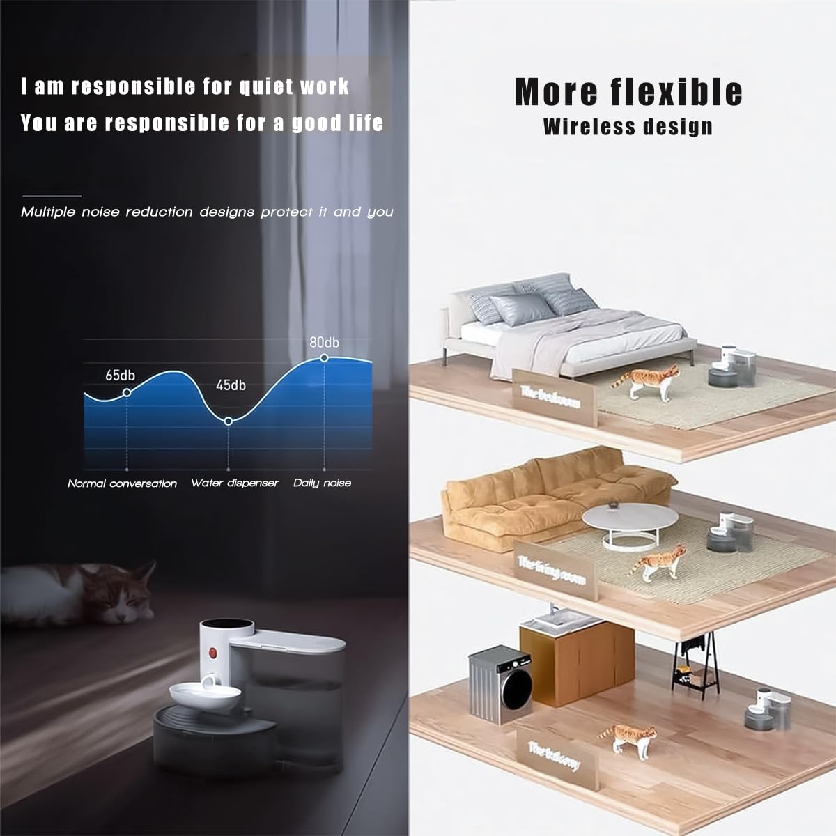 Smart Wireless Pet Water Fountain,2025 Upgraded Pet Water Fountain No Filter,3.5L/118oz Ultra-Quiet Design,Rechargeable Automati