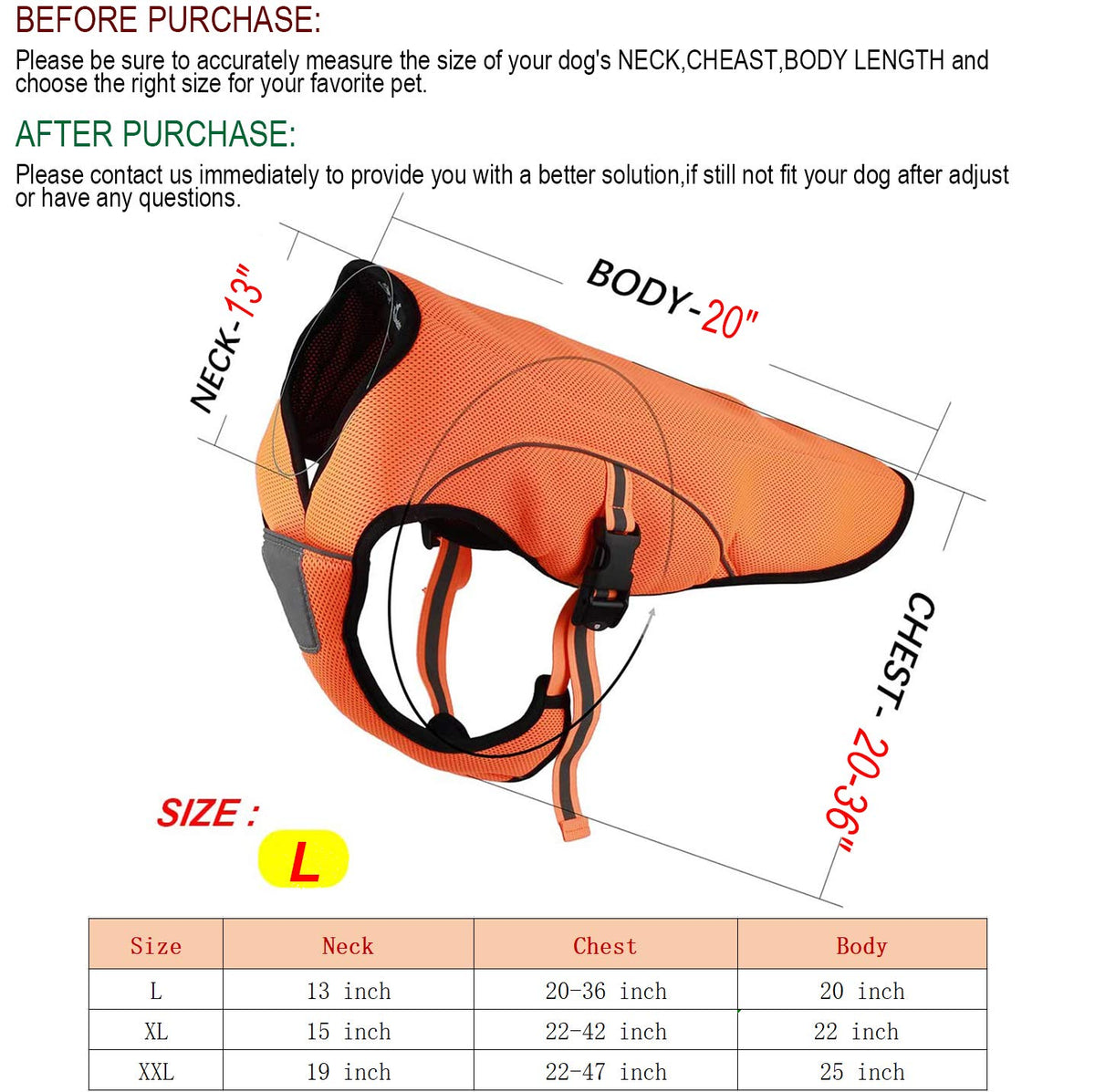 Smartelf Dog Cooling Vest Swamp Cooler Coat,Evaporative Jacket Safety Reflective Vest For Large Dogs Walking Outdoor Hunting Training Camping Orange-L