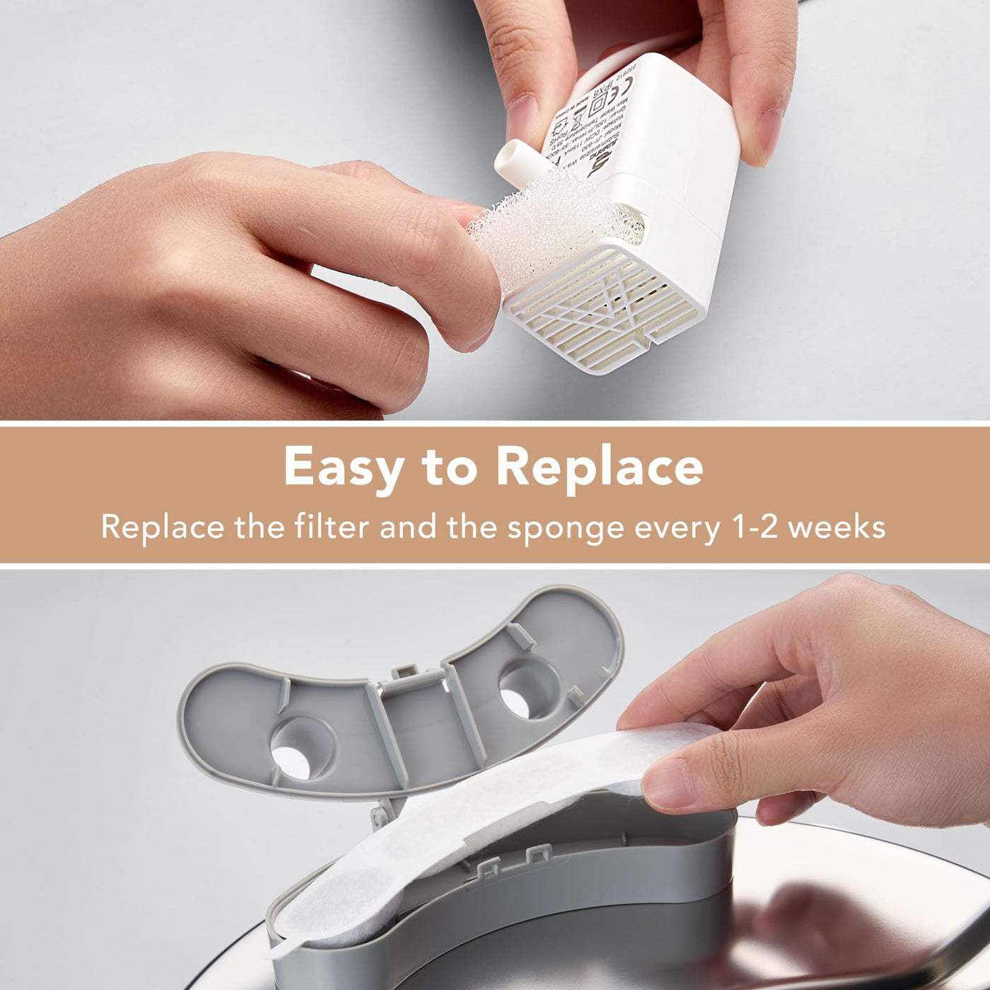 Smartoo Official 16 Packs Dog Water Filter Replacement And 16 Sponges With 1 Pump Holder For 7L/236Oz/1.8Gal Stainless Steel Dog