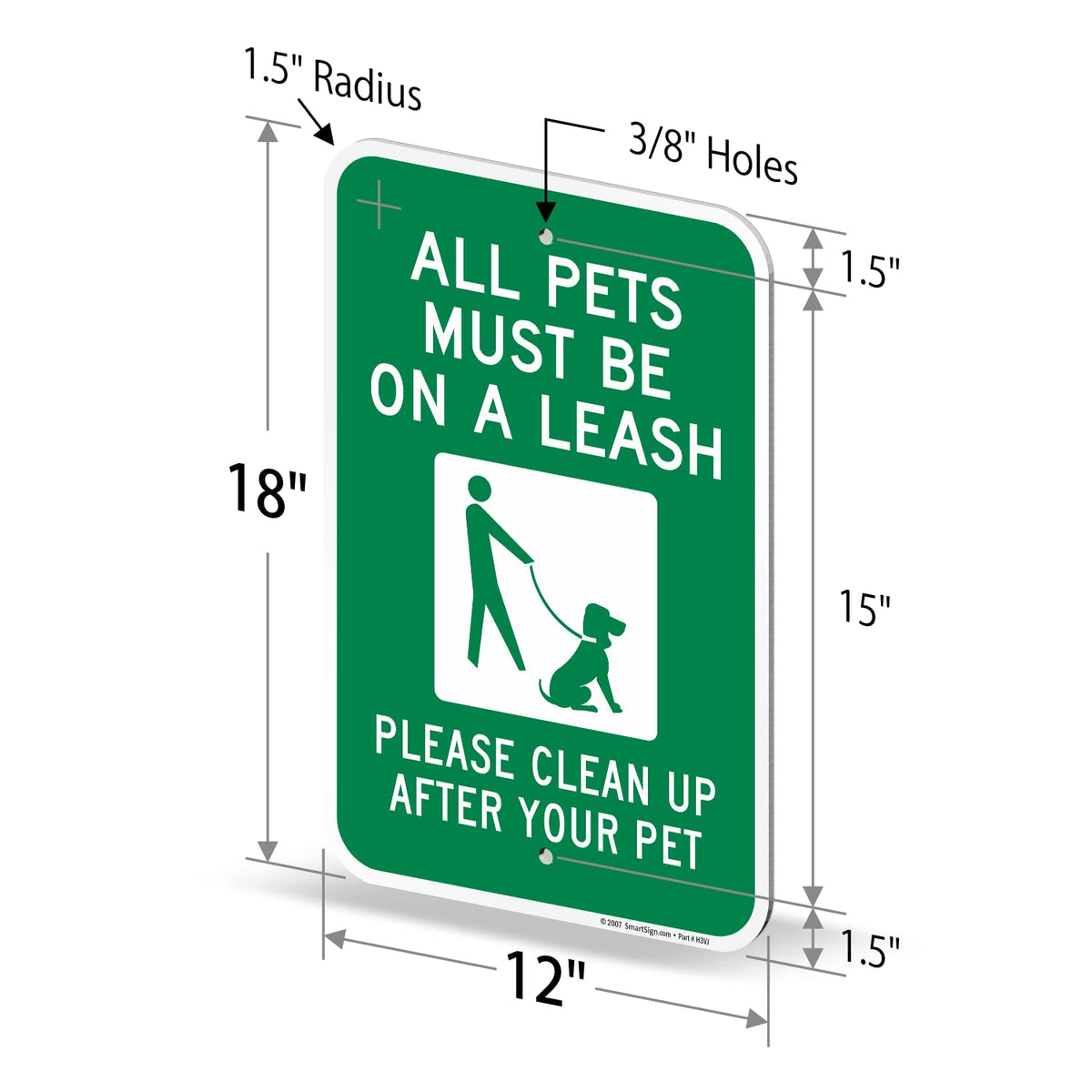 Smartsign All Pets Must Be On Leash Sign - 2 Pack, Please Clean Up After Your Pet Sign, 18 X 12 Inch, 2Mm Thick Aluminum Composi