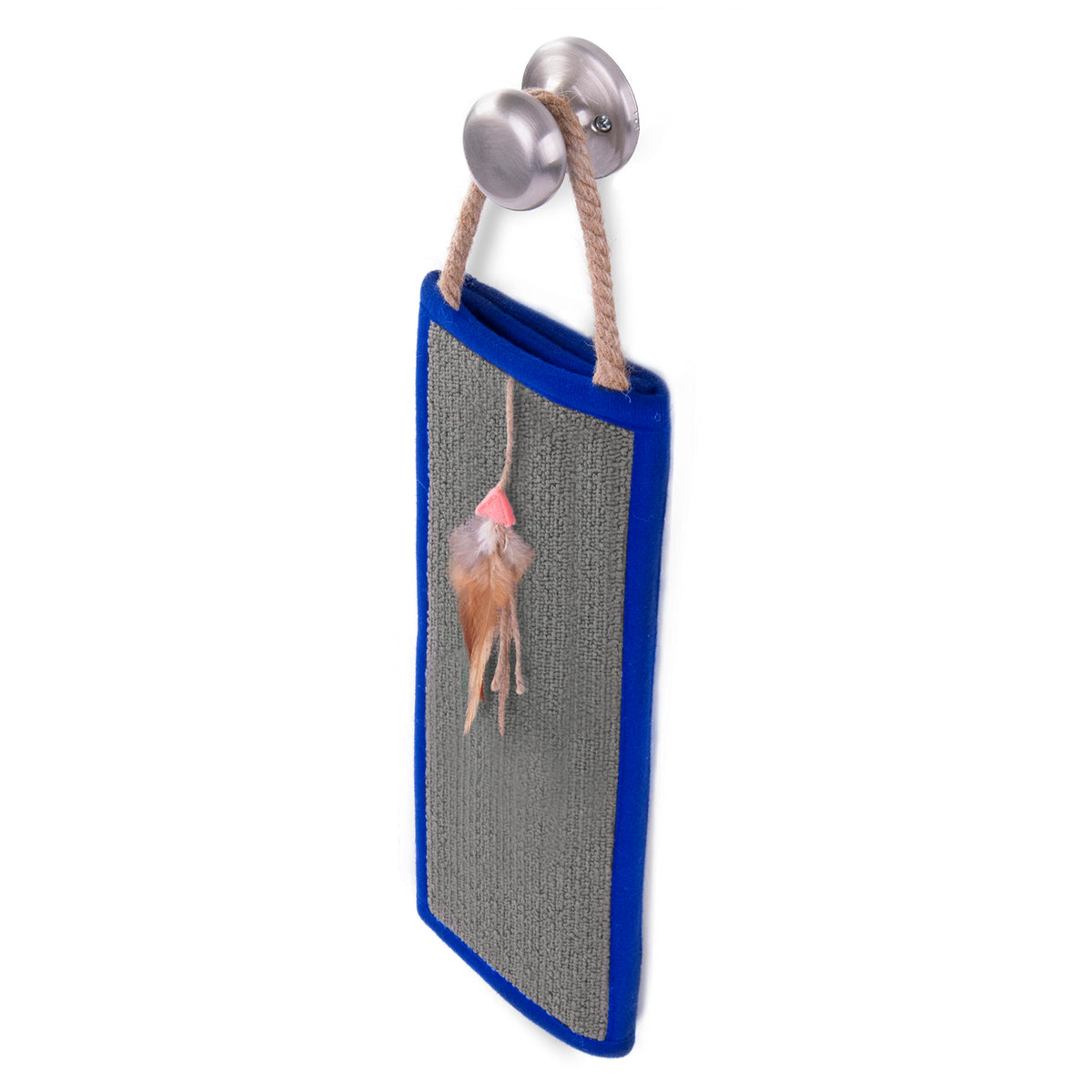Smartykat Clever Claws Carpet & Burlap Hanging Cat Scratch Mat - Brown/Gray With Blue Trim, One Size