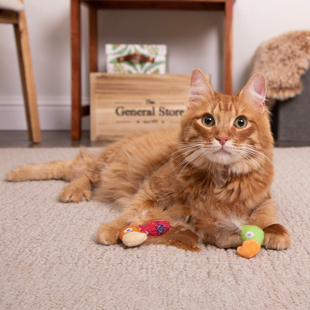 Instincts by SmartyKat Love Mates Feathery Cat Toys Set of 2 releases your cat's inner instincts with feathers and multi-textured plush bodies, mimicking the feel of prey they would find in the wild. Containing HappyNip Silvervine and Catnip, a natural extra-exciting to drive cats wild, SmartyKat Love Mates™ will soon become your cat's favorite 'prey.' Toys with HappyNip Silvervine and Catnip encourage cats to frolic, romp, and play. SmartyKat creates stylish cat products that help pet owners easily meet their cats' emotional, physical, and instinctual needs. Each product is designed to fulfill a particular feline need while fostering a stronger relationship between you and your cat. From scratchers and interactive toys to edible grass and catnip, SmartyKat keeps your feline companion's health, safety, and well-being at the core of everything we make. Giving pet parents the best of all worlds: innovative products, stylish designs, environmental responsibility, and affordability all in one place, satisfaction guaranteed! Please read all packaging instructions, warnings and cautions upon receipt. Packaging may contain small parts, discard after opening.