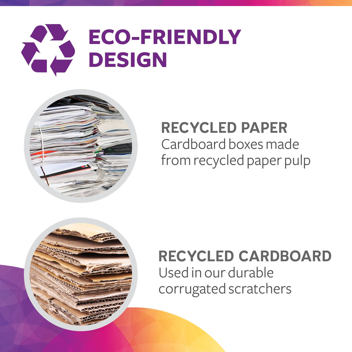 Q: What materials are used in the SmartyKat Scratch Up cat scratcher?A: The SmartyKat Scratch Up is made from eco-friendly, recycled cardboard, ensuring safety for both your pets and the environment. Its durable construction allows for long-lasting use while providing a satisfying scratching experience for your cat.