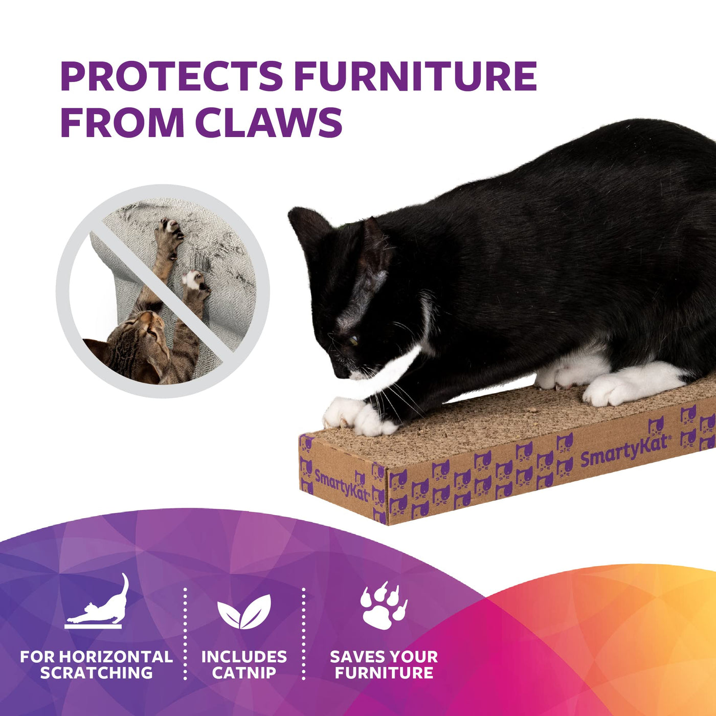 Q: Can the SmartyKat Super Scratcher help protect my furniture?A: Yes, the SmartyKat Super Scratcher is designed to curb destructive scratching behavior by providing an appropriate outlet for your cat's natural instincts. Placing it near furniture that your cat frequently scratches can help redirect their behavior.