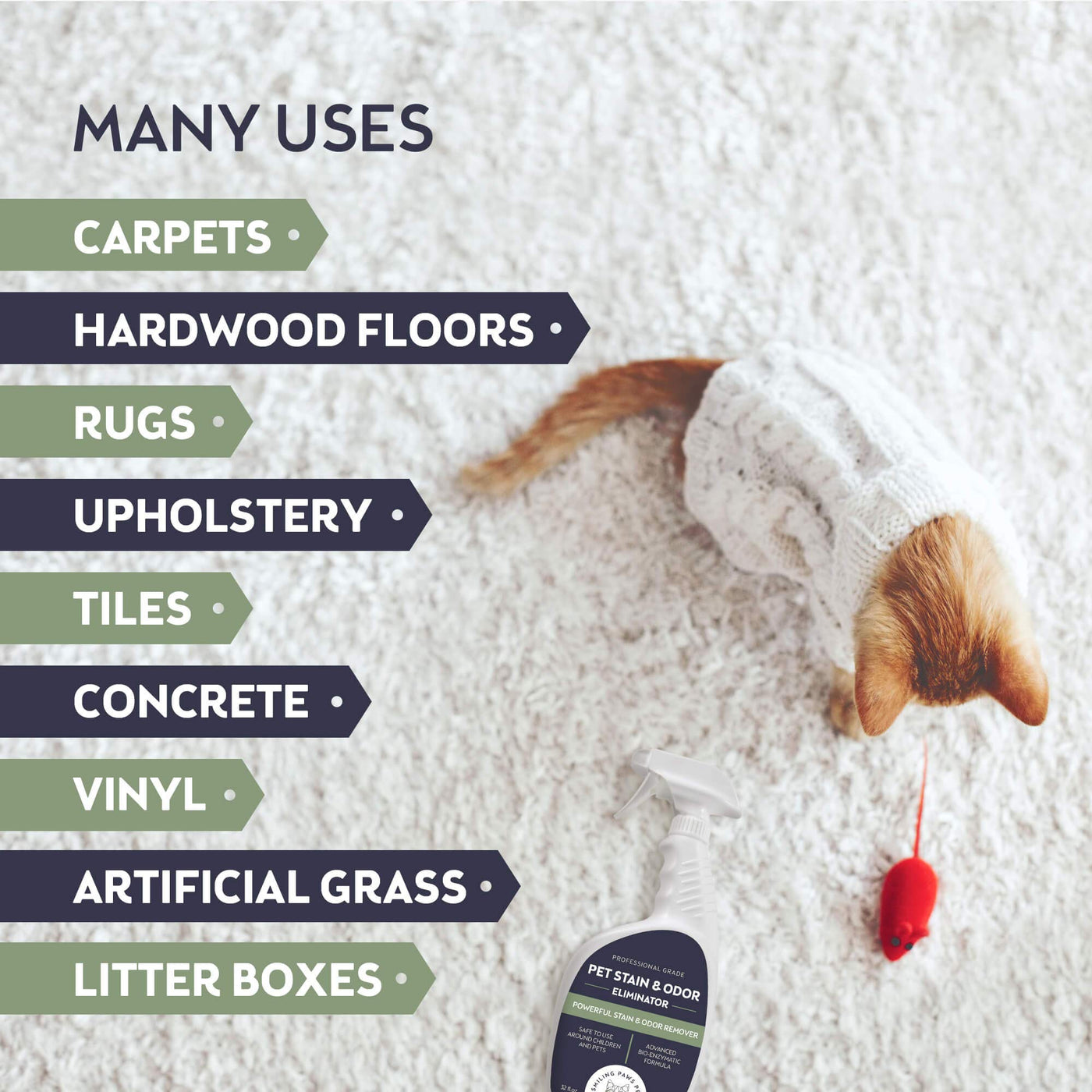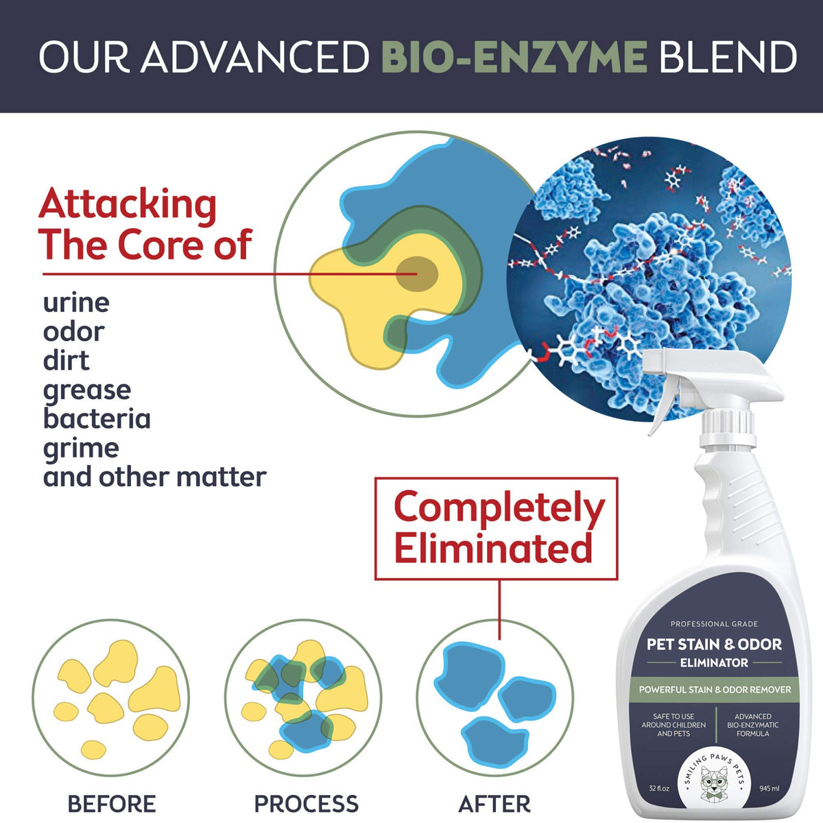 ? Eliminates Odor & Stains: You Are Going To Love This Sprayer!! Our Unique Enzyme Stain & Odor Remover Have Been Lab Tested And Fully Certified In Us To Remove Pet Stains And Odors Without A Compromise. ? Works On Multiple Surfaces: Spray This Versatile Cleaner On Carpets, Hardwood Floors, Upholstery, Rugs, Litter Boxes, Carriers, Kennels And More. It Erases Urine, Feces And Odors From Virtually Any Surface. ? Advanced Bio-Enzyme Blend: A Purposely Developed Enzymatic Formula. The Natural Enzymes Will Dig And Activate On Contact With Stains & Odors And Start To Consume Ammonia And Other Biological Means Until Fully Eliminated. ? Non Toxic Formulation: Unlike Similar Products, Our Pet Odor And Stain Eliminator Is Safe For Everyone. Pets And Kids Included. ? Satisfaction Guaranteed: We Dont Just Make This Stuff Up. Try This Sprayer Once And See How It Will Change Your Life. If You Still Dont Agree, We Let You Keep Your Money And The Product.