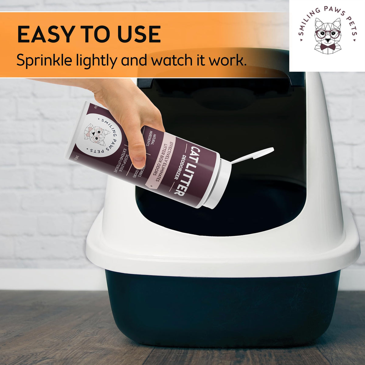 Smiling Paws Pets Organic Cat Litter Deodorizer - Kitty Litter Deodorizer, Box Scent Remover, And Moisture Absorber - Keeps Litt
