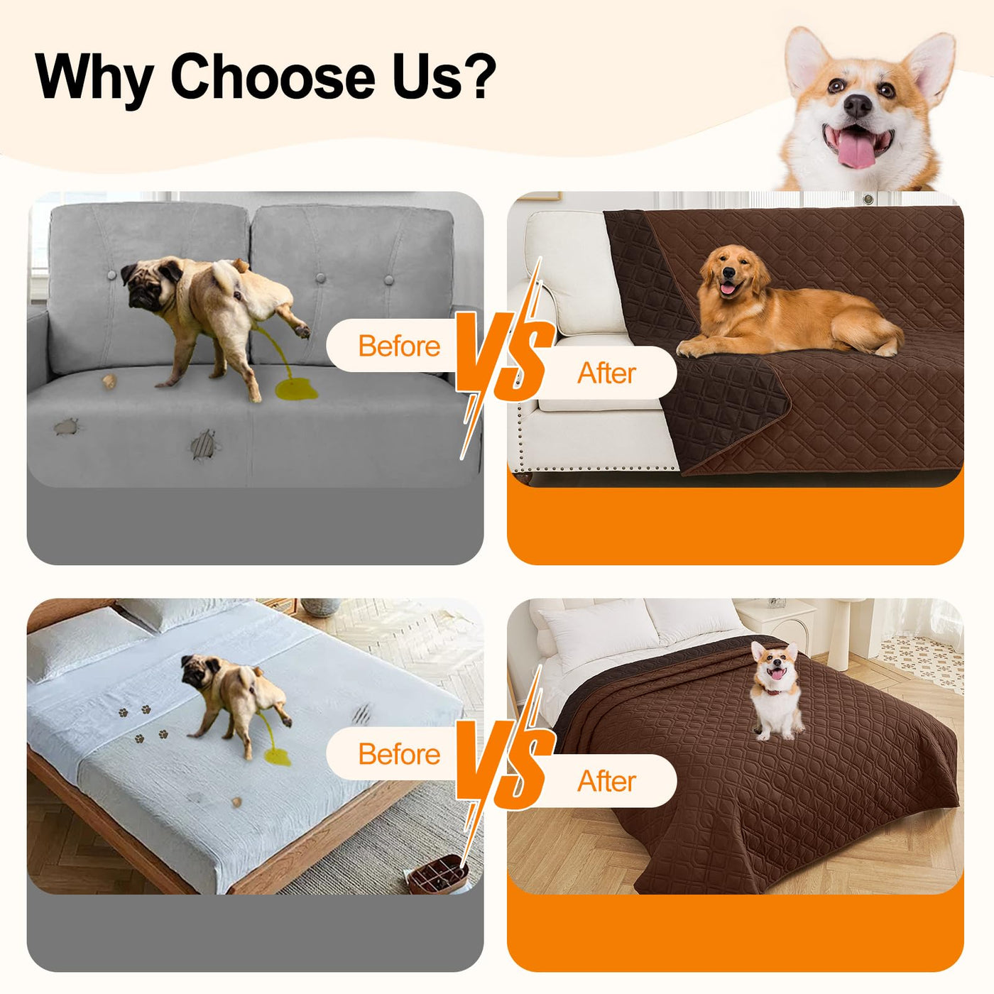 Smiry Waterproof Dog Blanket, 82X82 Inch Soft Pet Bed Cover Reversible, Washable Sofa Couch Furniture Protector For Small Medium