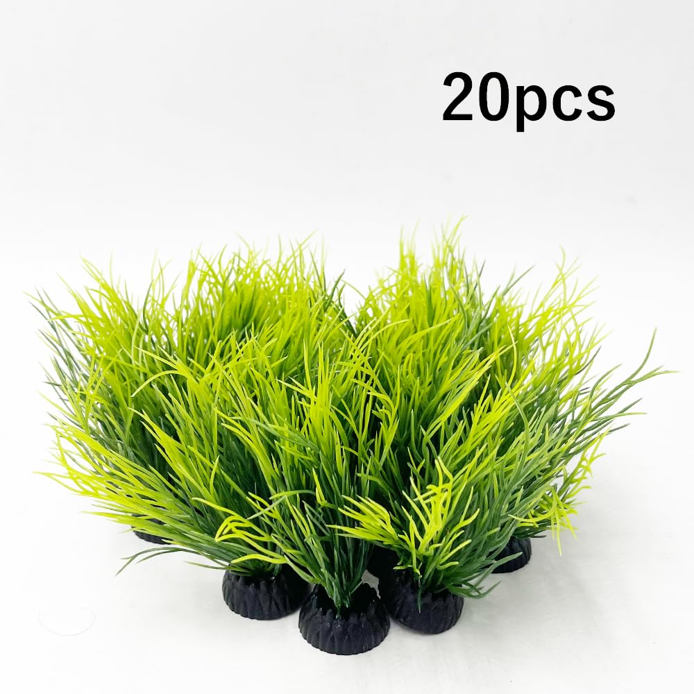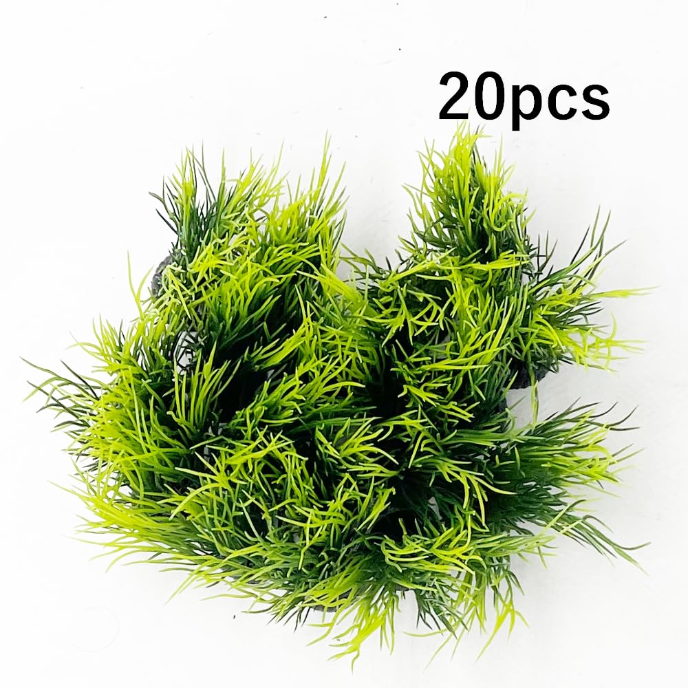 Aquarium Plants Fish Tank Decorations 20pcs Small Size/1inch Tall Plastic Artificial Plant Goldfish Waterscape Fish Hides Mini Grass Set