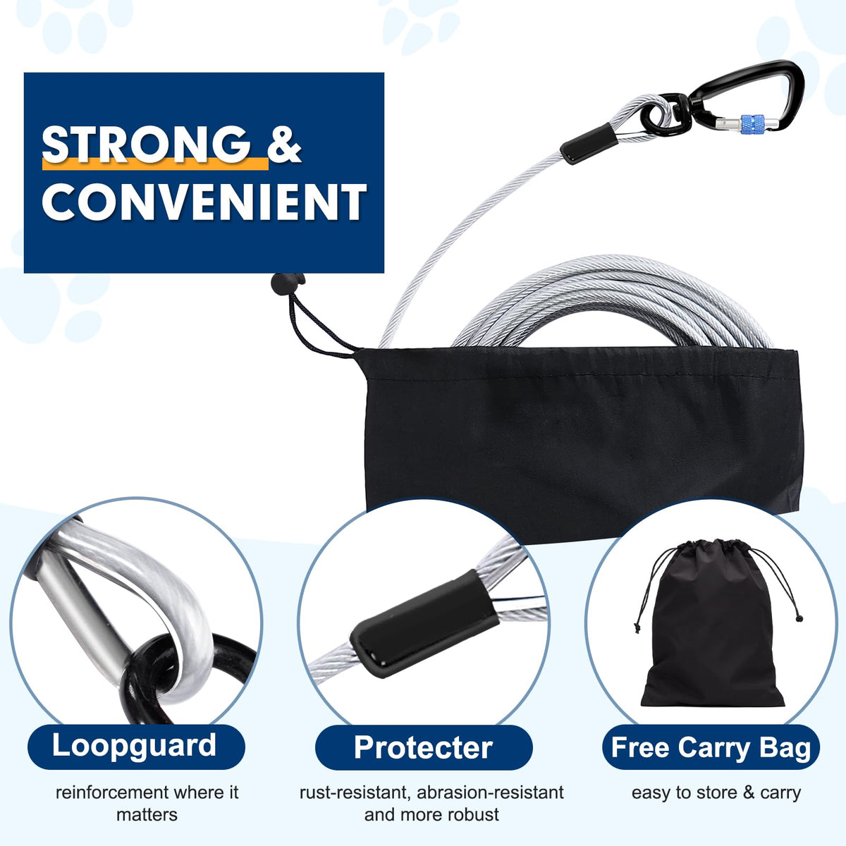 Snagle Paw Dog Tie Out Cable Is The Ultimate Solution For Pet Owners Who Love Spending Time Outdoors With Their Furry Friends. With A Remarkable Break Strength Of 1000Lbs, This Robust Tie Out Cable Ensures That Your Dog Can Enjoy Freedom While Remaining Safe And Secure.Designed With A Secure Swivel Hook Latch, Our Cable Prevents Tangling And Offers Peace Of Mind During Outdoor Activities Like Camping, Hiking, Or Just Lounging In The Backyard. Crafted From A Soft Yet Durable Wire Rope, It Wont Irritate Your Pets Coat, Allowing Them To Roam Comfortably.Incorporating Innovative Spring Buffer Technology, The Snagle Paw Dog Tie Out Cable Reduces Shock And Strain, Enhancing The Safety Of Both Your Pet And The Cable Itself. When Its Time To Pack Up, Our Convenient Storage Option Makes It Easy To Stow Away Without Hassle. Plus, Cleaning Is A Breeze - Just A Quick Wipe Will Keep It In Top Condition.Whether You Have A Small Or Large Dog, This Versatile Dog Tie Out Cable Is Perfect For Any Outdoor Adventure. Pair It With Our Premium Dog Leads For A Complete Outdoor Experience That Prioritizes Safety And Comfort. Enjoy Every Moment Outside With Your Beloved Pet Using The Snagle Paw Dog Tie Out Cable!