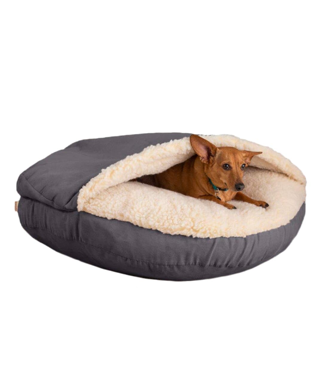 Is your dog a cuddler? A burrower? The Cozy Cave dog bed is just what you’re looking for! The hooded dog bed design lets your dog snooze between layers of soft Sherpa lining for enveloped comfort and coziness. Made to appeal to a dog’s natural instincts for burrowing, the Cozy Cave is the best dog bed for dogs who love sleeping under blankets. The Cozy Cave gives them a place to relax with a feeling of safety and security for less anxiety and more restful sleep. Sizes: Small: 25 in. Diameter x 4 in. Sidewall - Hood Height: Approximately 8 in. tall. Large: 35 in. Diameter x 4 in. Sidewall - Hood Height: Approximately 8 in. tall. X-Large: 45 in. Diameter x 4 in. Sidewall - Hood Height: Approximately 8 in. tall.
