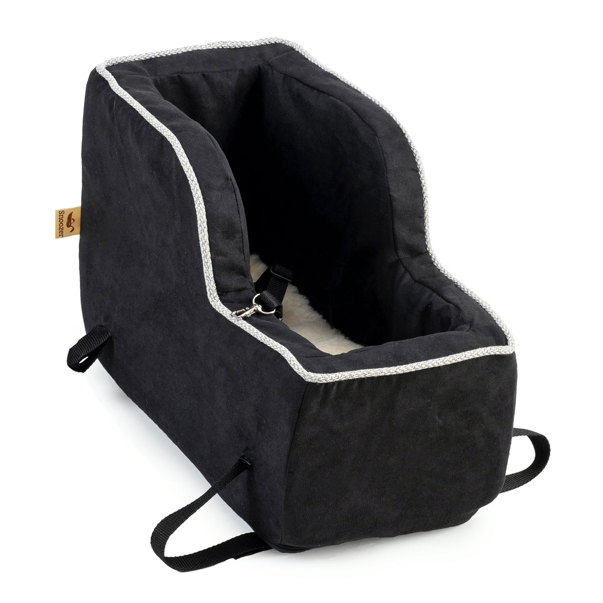Designed for Dogs - The Snoozer High Back Console Dog Car Seat lets dogs lean back in comfort and security while enjoying the ride and view up front. Our premium pet car seat provides unmatched comfort and safety for your pet. Its sturdy foam form and high back design ensure dogs remain secure and relaxed, reducing anxiety during travel. Beyond being a mere dog seat for the car, it doubles as a comfortable dog travel bed, ensuring a smooth, secure and comfortable ride for your beloved pet. | Designed for Drivers - Our high-back center console dog car seat design can prevent pet passengers from being tempted to explore the rear of the car. Enjoy distraction-free driving safe in the knowledge your dog is secure and comfortable, right by your side. This dog carrier attaches firmly to the console lid for safe travel, keeping your dog's car seat in place with a dog car seat belt. Use a console dog car seat to free up a spot in the backseat without leaving your dog at home. | USA Crafted with Premium Materials - Our high-back center console dog car seat delivers an unparalleled combination of comfort and structural integrity, boasting a 1030 foam-rated base for superior dog seat shock absorption and 1360 foam-rated sidewalls that remain sturdy even with extended use. The foam construction of our dog car carrier is lightweight to move and gentle on your car’s interior. Proudly assembled in USA by family-owned Snoozer with careful attention to detail and durability. | Machine Washable - This dog console car seat features a removable and machine washable luxury microsuede cover. The ultra-soft microsuede interior of this high-back console dog car seat provides a snuggly and safe place for your dog to snooze. The cover supports the shape of the dog car seat and is durable, stain-resistant, and water-resistant. Best of all, the seat cover features a zipper for easy removal and cleaning. Simply machine wash cold, then hang dry. | Optimal Fit - This size Small is suggested as a puppy car seat or very small dog car seat for dogs up to 10” long and 7lbs or less, such as Yorkshire Terriers and Chihuahuas. Console sizes differ among vehicles, so measure your car’s console and check carefully with exterior dimensions of our dog car seat. Additionally, compare your dog’s size with the seat’s interior dimensions. Exterior Size: Height (back): 12” Width: 9” Length: 18”; Interior Size: Height (back): 10” Width: 6” Length: 16”