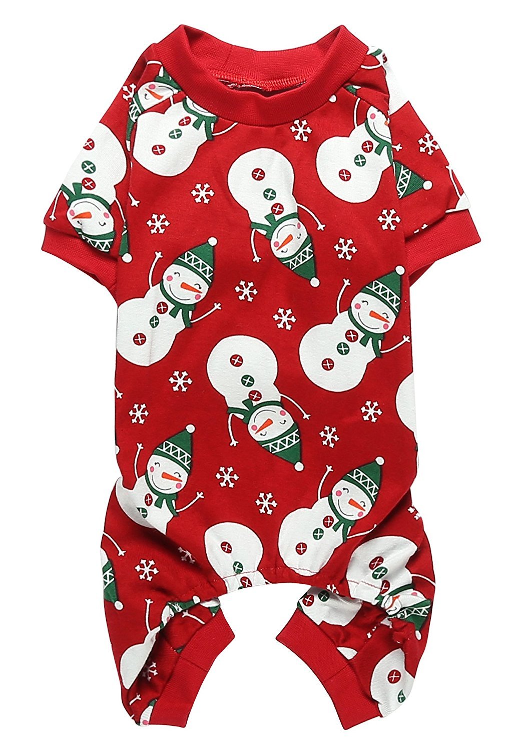 Pet Dog Jumpsuit Pajamas,available in 5 size:Size: back length 9', neck girth 8-10', chest girth 14- 16'; Size: back length 12', neck girth 10-12', chest girth 18- 20'; Size: back length 16', neck girth 14-16', chest girth 20- 22'; Size: back length 20', neck girth 16-18', chest girth 22-26'; Size: back length 23', neck girth 20-22', chest girth 28-34'; Pet Dog Jumpsuit Pajamas With Holiday Snowman Snowflake Print.Machine wash in cold water Line dry High Quality Soft Breathable 95% Cotton Material with a bit of lycra.