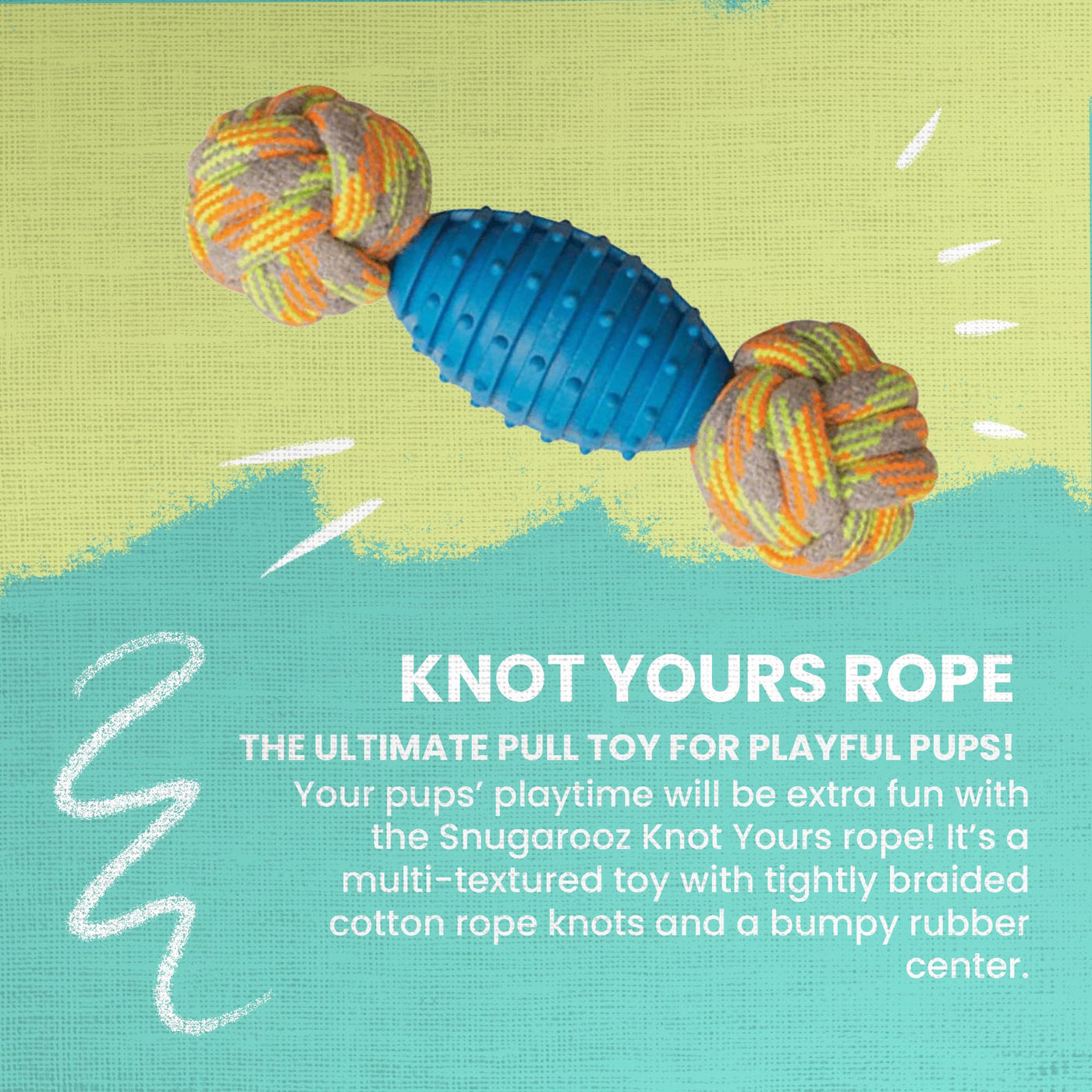 Multi-Textured Fun: The Snugarooz Knot Yours features tightly braided cotton rope knots and a bumpy rubber center, perfect for engaging your dog’s senses. | Great for Fetch & Chew: This versatile toy is ideal for fetch games or as a satisfying chew toy, making playtime exciting for dogs of all sizes. | Durable Design: Made from sturdy cotton rope and rubber, Knot Yours is built to withstand hours of interactive play and chewing. | Suitable for All Sizes: Designed for dogs of all sizes, this toy provides entertainment and helps promote healthy exercise. | Comes with Patch Repair: Includes a patch repair feature, so even after tough play, the toy is easy to maintain and ready for more fun.