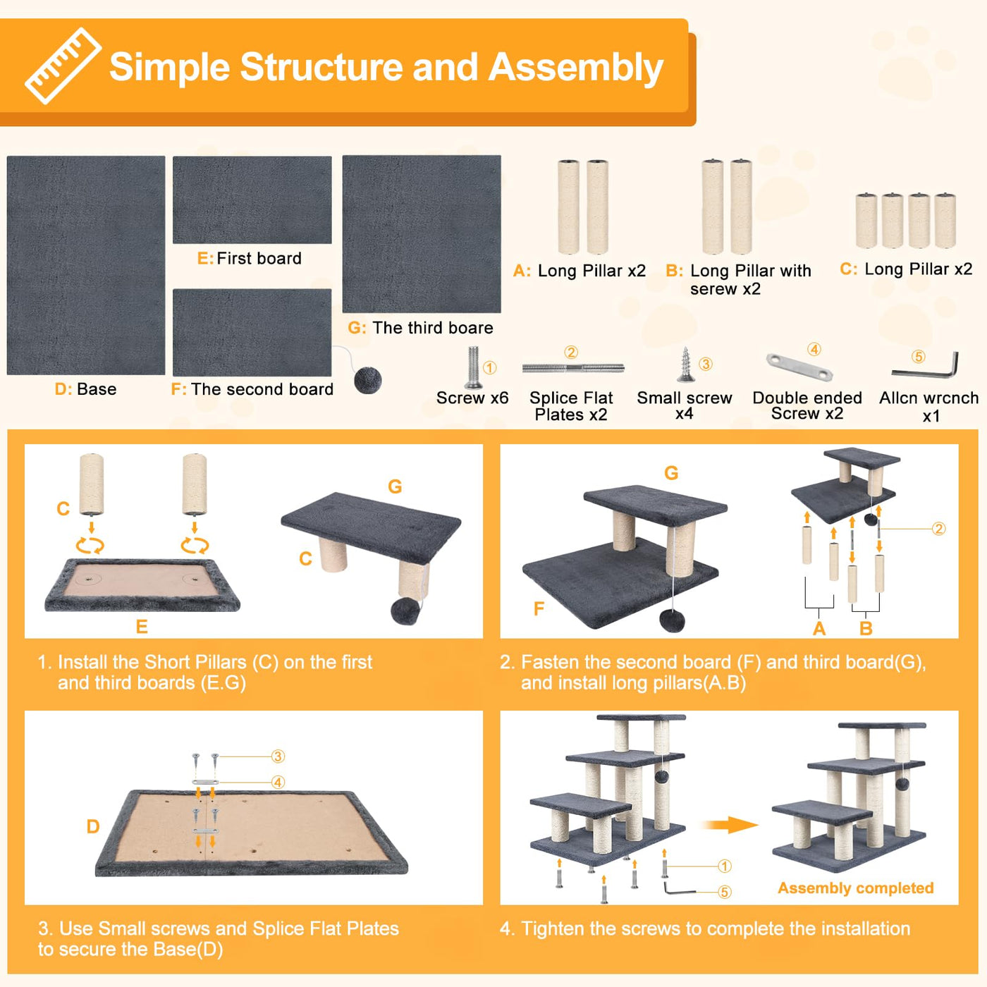 Socater Dog Stairs, Cat Scratching Post 3 Steps Stairs For Cats And Dogs, Stable 20 Inch Pet Stairs For High Beds & Sofas Protec