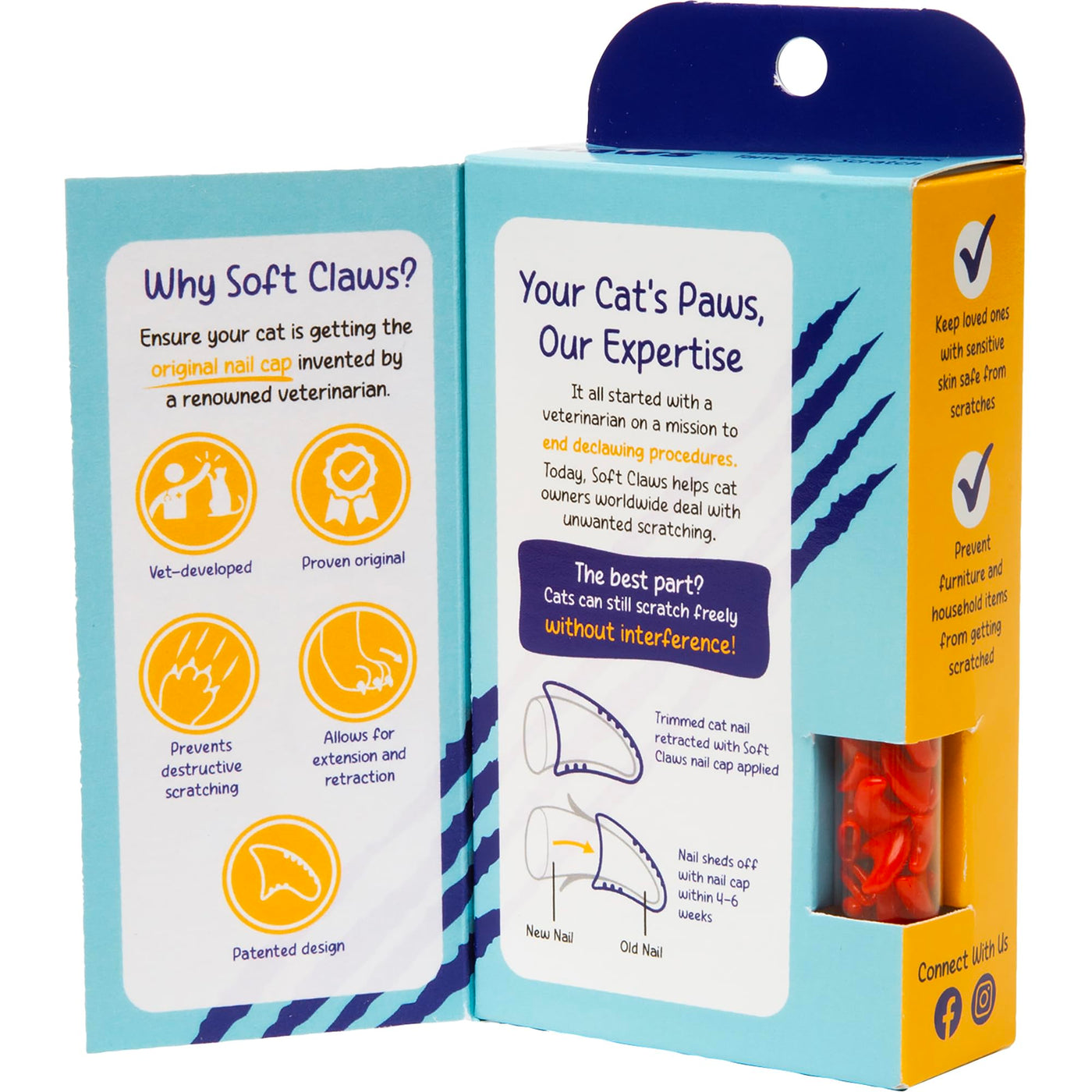 Protect homes against destructive scratching by applying Soft Claws Nail Caps to kittens nails | This is simple, non-surgical alternative to declawing | Easy-to-apply caps last 4-6 weeks and will not interfere with pet's normal behavior | Feline take-home kit includes 40 nail caps, adhesive, 6 applicator tips and instructions | Measures 6-4/5-inch length by 5-inch width by 1-4/5-inch height, available in large size with red color