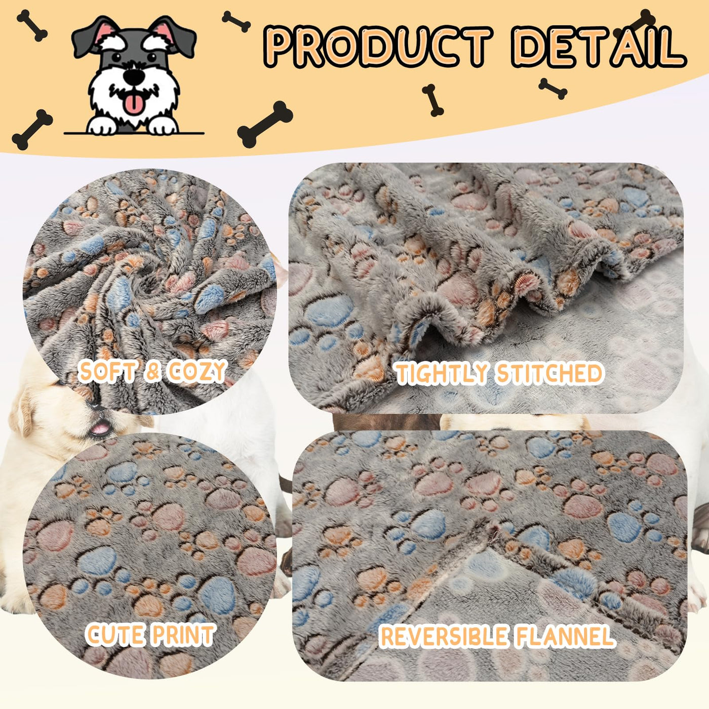 Dog Blanket With Cute Elephant Pattern 1.Material: Made Of Super Soft And Warm Flannel Fleece Material. 2. Color: Grey, Brown And Yellow 3. Dog Blanket Size: 110 X 80 Cm, 80 X 60 Cm, 60 X 50 Cm 4.Applicable Pets: Dogs, Cats, Rabbits And Other Small Pets. The 1-2-Inch Error May Occur Due To Manual Measurements. Please Make Sure The Blanket Size Is Large Enough For Your Pets Before Purchasing. 5.Easy To Wash/Clean: Machine And Hand Washable, Easy To Wash And Keeps Shape After Each Wash.Passing, Soft, Fluffy, Shrink-Free, Can Not Afford Ball, Aroma And Pleasant, Easy To Rinse, Soft.