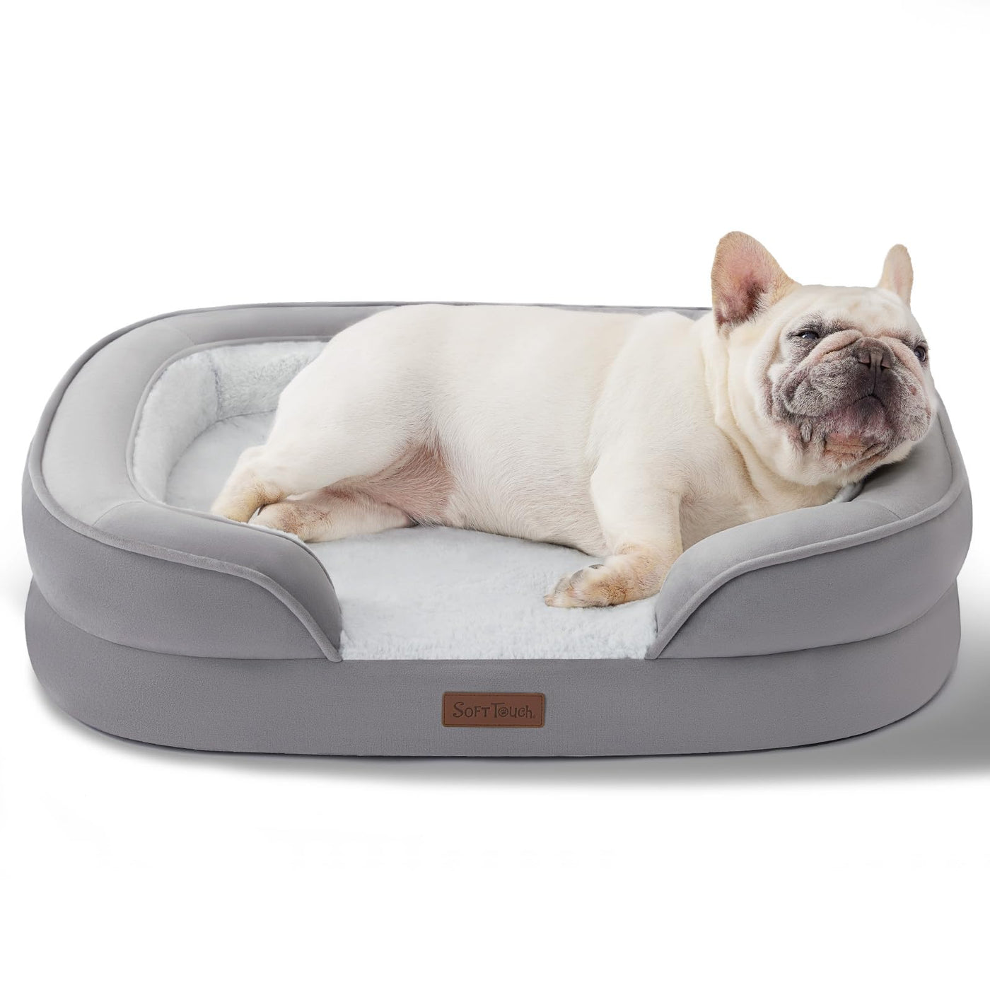 Soft Touch Orthopedic Dog Bed For Medium Dogs With Faux Fur Top, Waterproof Pet Couch Bed With Removable Washable Cover And Supp