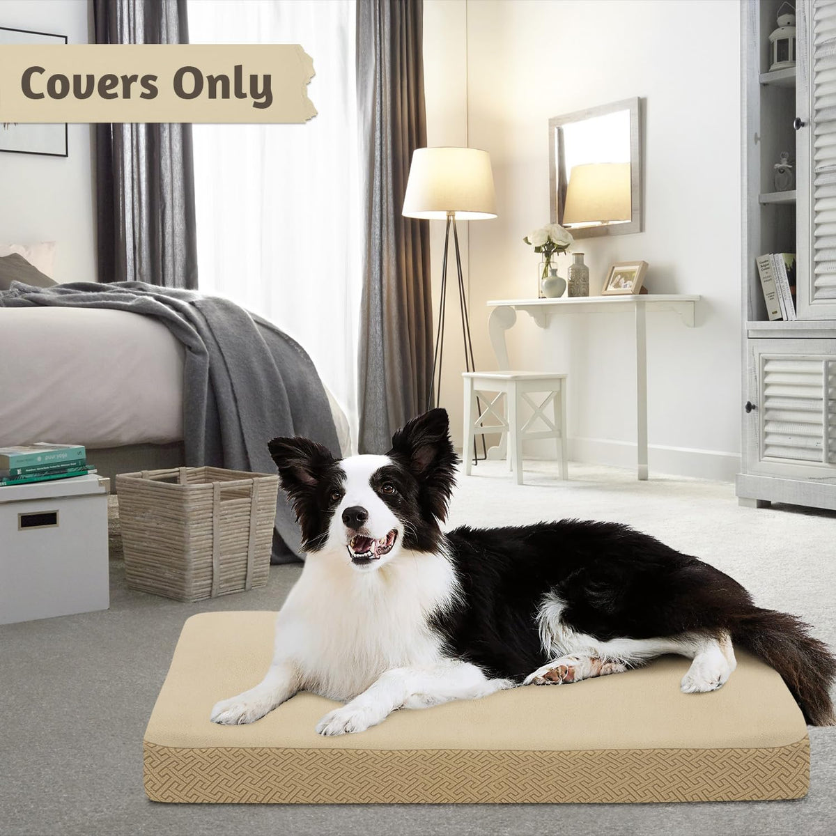 Softown Dog Bed Covers Replacement Washable Dog Bed Waterproof Cover Soft Cover For Dog Cat, Cover Only (Beige, 48X30X6 Inches)