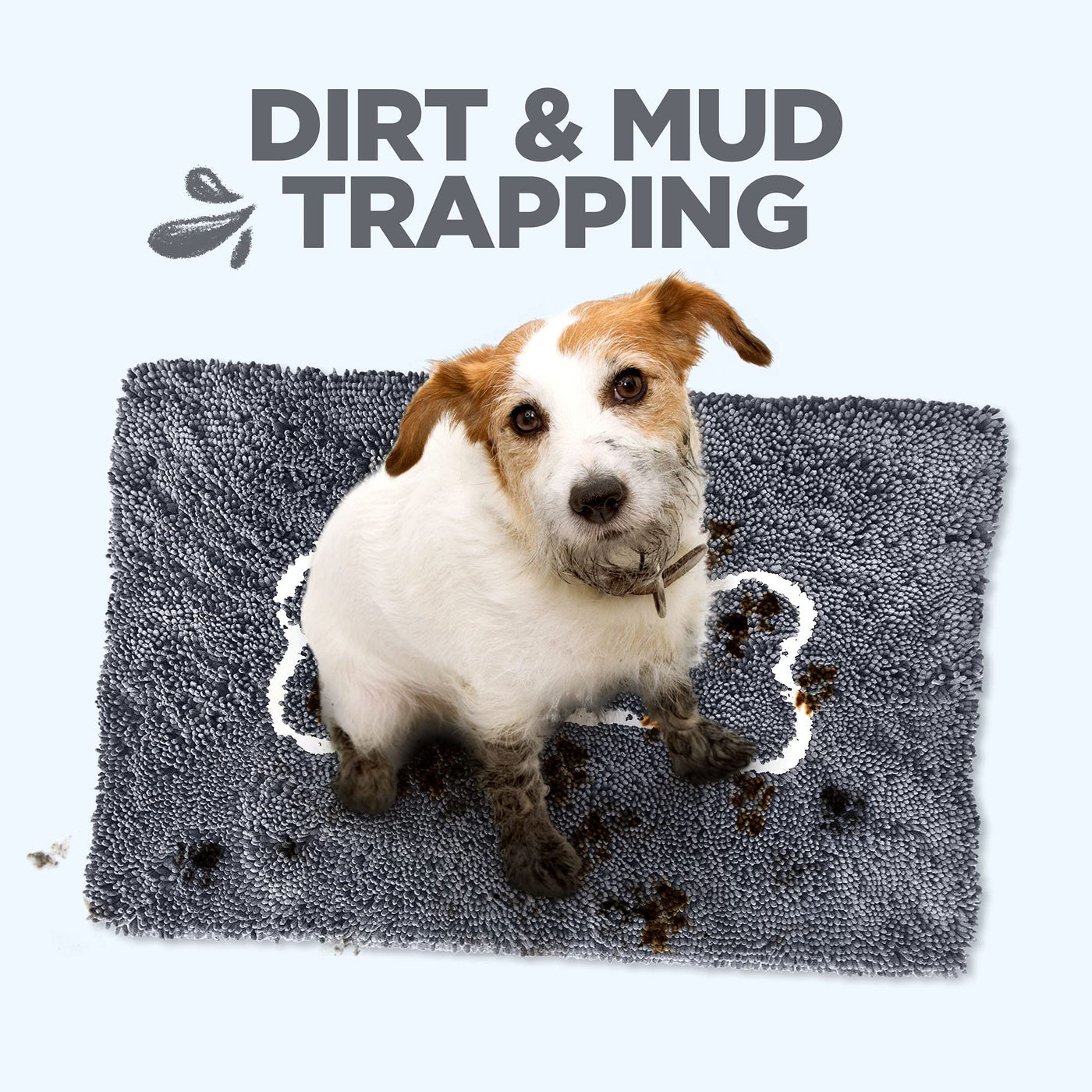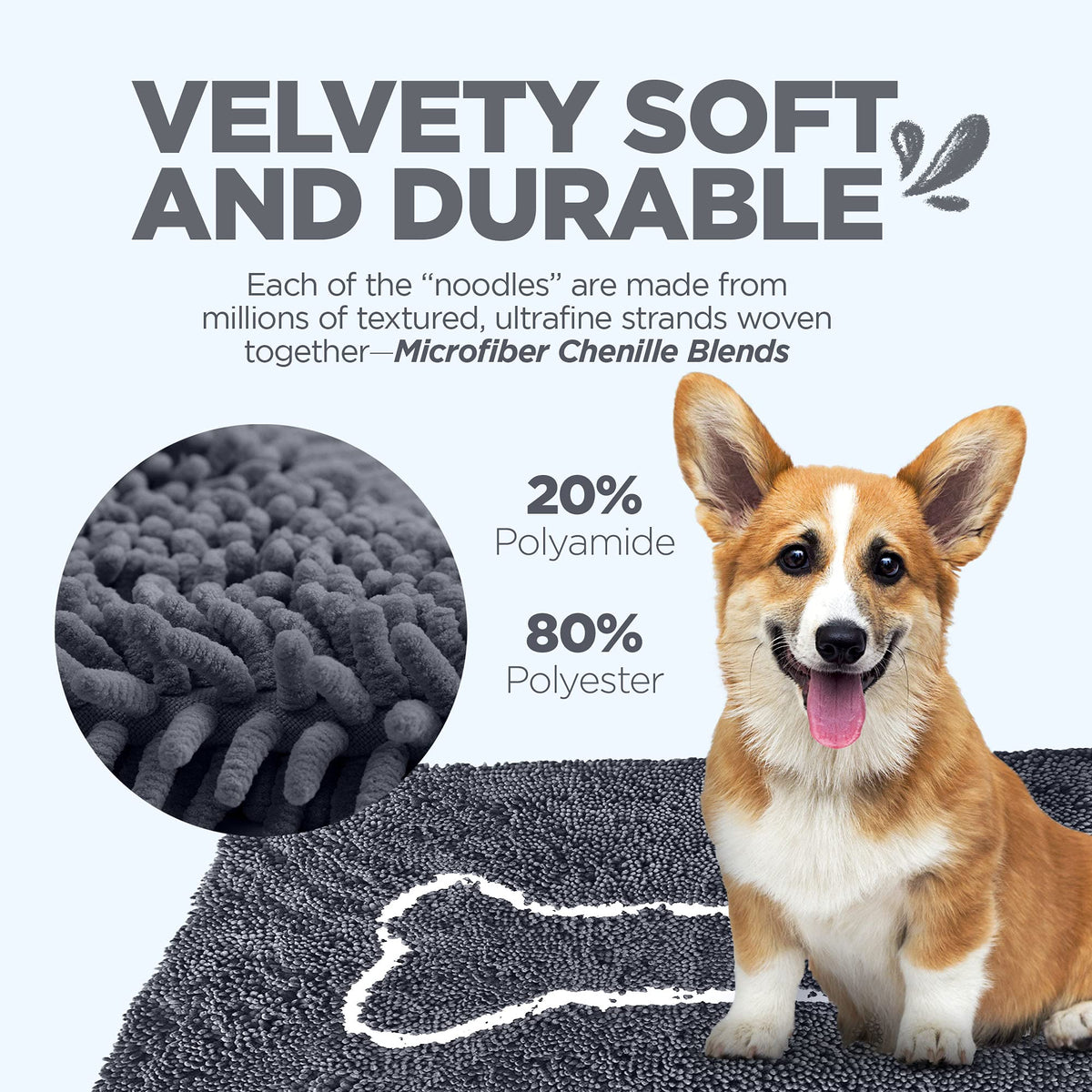 Soggy Doggy Doormat With Bone Design | Gray/Light Gray Bone | Extra-Large 36 X 60 | Ultra Absorbent Microfiber Chenille We