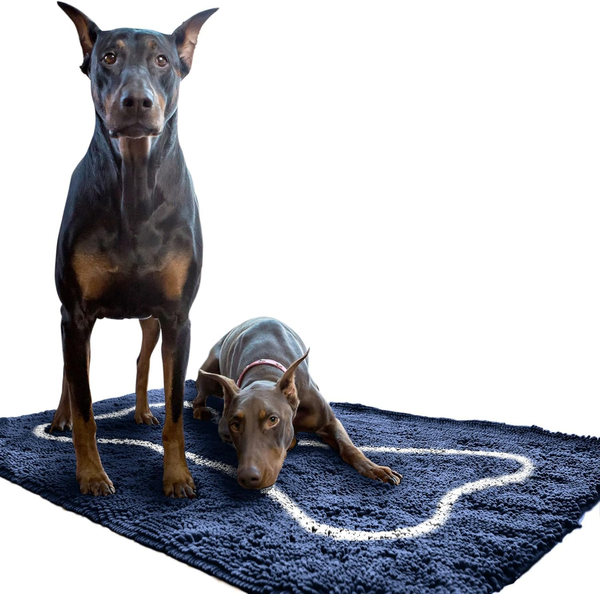 Soggy Doggy Doormat With Bone Design | Navy Blue/Oatmeal Bone | Extra-Large 36 X 60 | Ultra Absorbent Microfiber Chenille