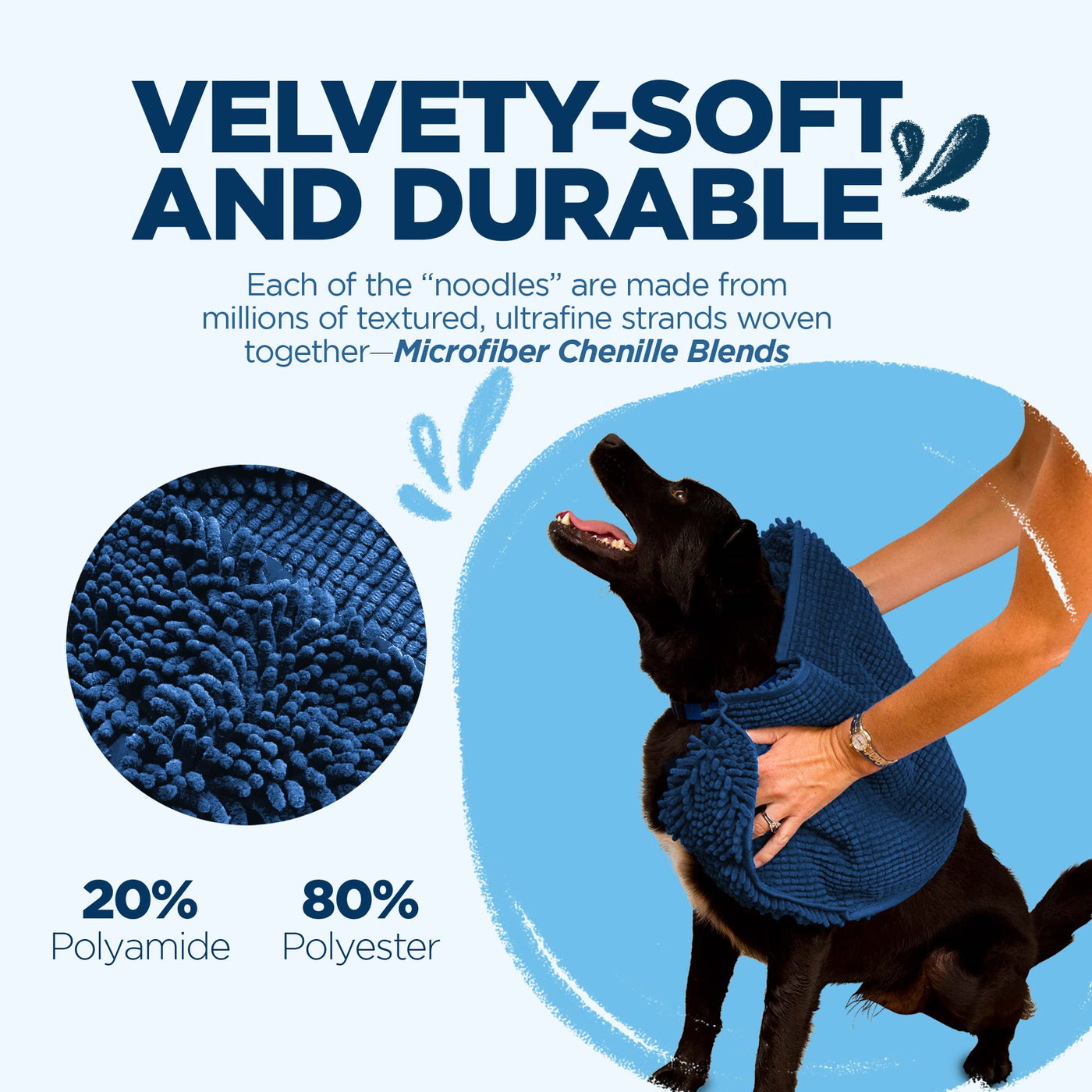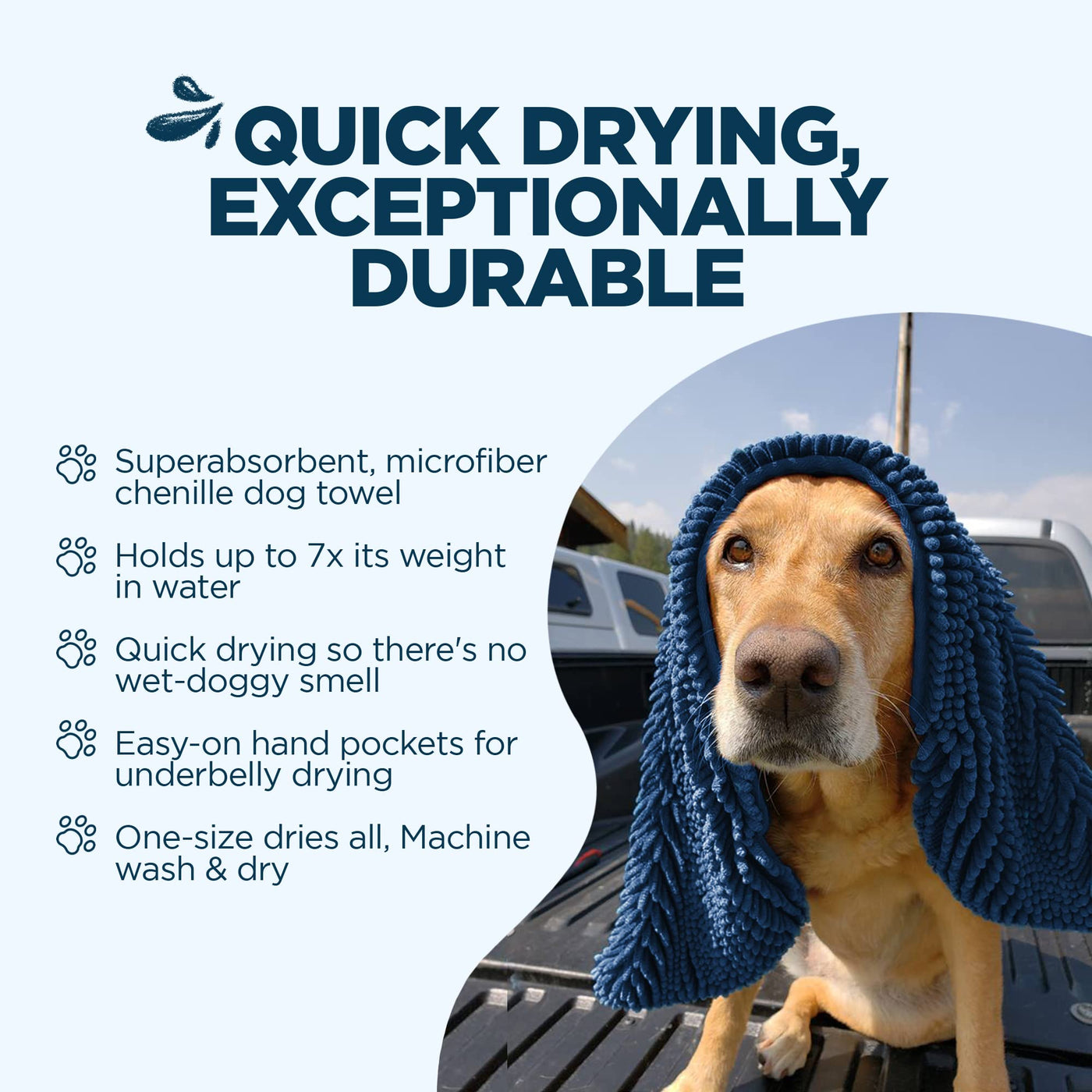 Superabsorbent Microfiber Dog Towel - Ditch those ratty dog towels for this ultra-absorbent dog towel! Made of microfiber chenille it soaks up 7x more than its weight in water and traps dirt like sponge leaving your dog and home clean & dry in no time.