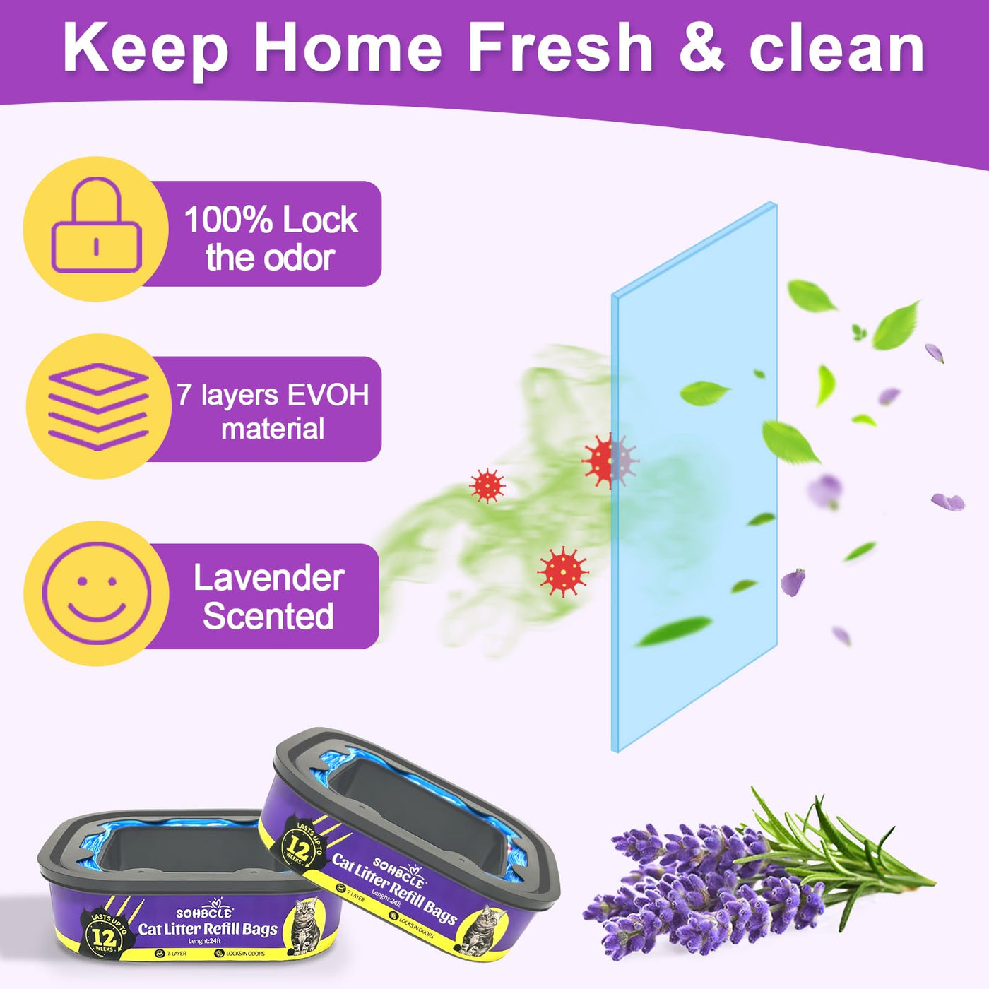 Sohbcle Cat Litter Refill Bags | 24Ft 8-Pack | Odor Control Cat Litter Bags | Compatible With Pet Genie Refills Standard,Plus,St