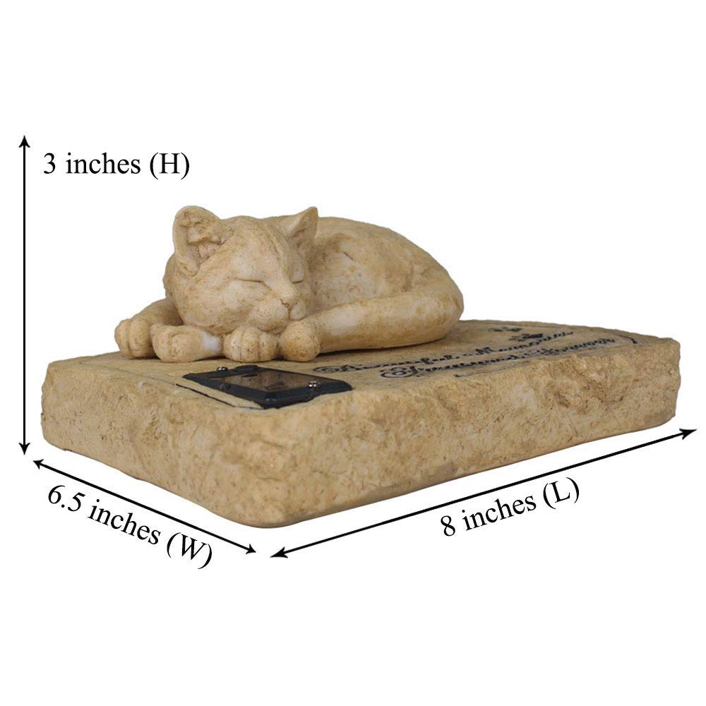 Solar Light Memorial Stones With Sleeping Cat Statue - Auto Glow Night Cat Grave Markers - 8'X6.5'X3'