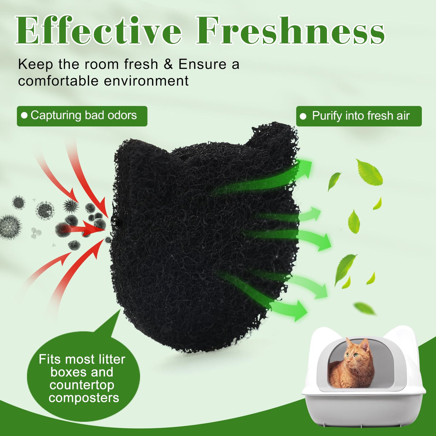 The Cat Litter Box Filter Is Compatible With Most Cat Litter Pans And Boxes, Eliminating Unpleasant Odors Caused By Pet Waste. It Helps Keep Your Indoor Space Fresh And Ensures A Comfortable And Cozy Environment. Its Unique Kitty-Shaped Design Adds A Touch Of Cuteness To Your Litter Box. Use It To Create A Home Atmosphere That Will Impress Your Guests During Visits