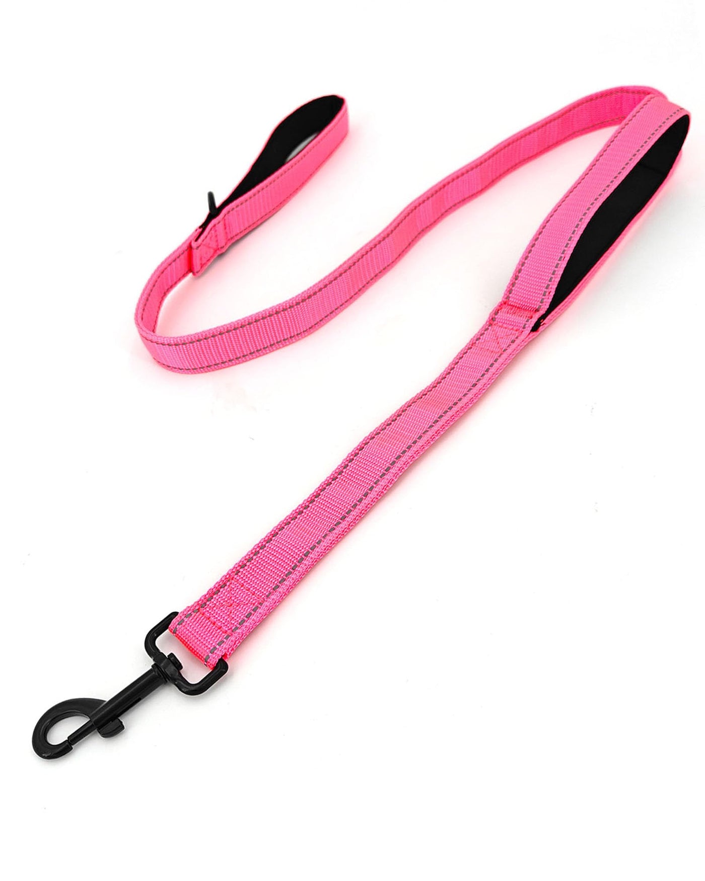 Solmoony 4Ft Pink Strong Dog Leash With 2 Padded Handles, Traffic Handle Extra Control, Double-Sided Reflective Walking Lead For