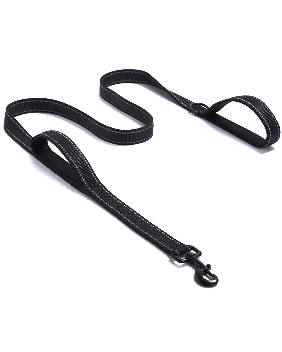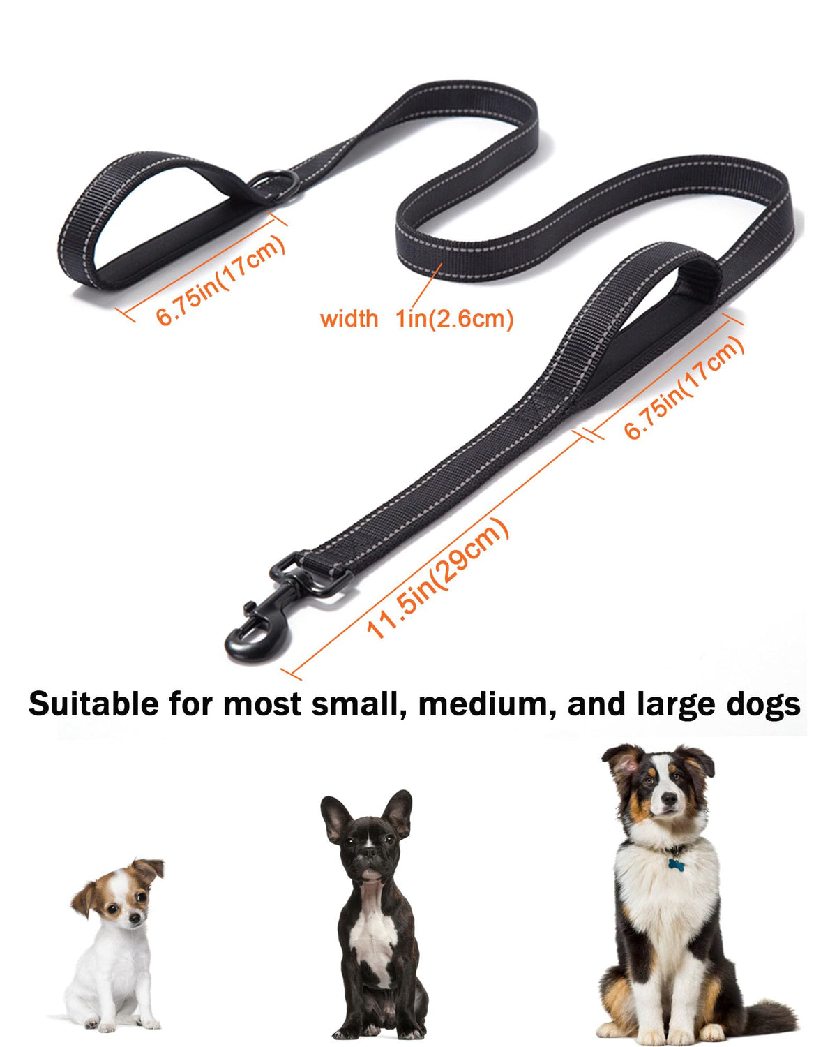 Solmoony 6Ft Black Strong Dog Leash With 2 Padded Handles, Traffic Handle Extra Control, Double-Sided Reflective Walking Lead Fo