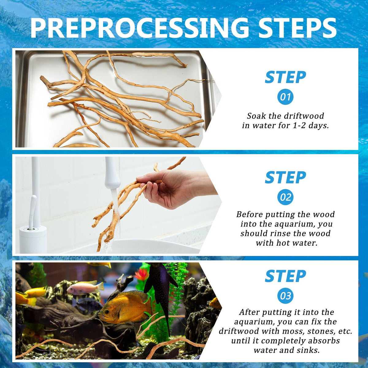 Features: The surface of the natural driftwood fosters the growth of beneficial microorganisms. This feature contributes to a healthy development of the micro environment within the aquarium. Each package contains 250g of natural color driftwood, add natural beauty to your fish tank. Ideal for use as reptile wood, fish tank wood, or aquarium driftwood, and great for any hobbyist looking to create a natural environment for their aquatic pets. Specifications: Material: drift wood Color: natural color Size: 12-16inch/30-40cm Package includes: 1 X 250g natural driftwood for aquarium Notes: Manual measurement, please allow slight errors on size. The color may exist a slight difference due to different screen displays.