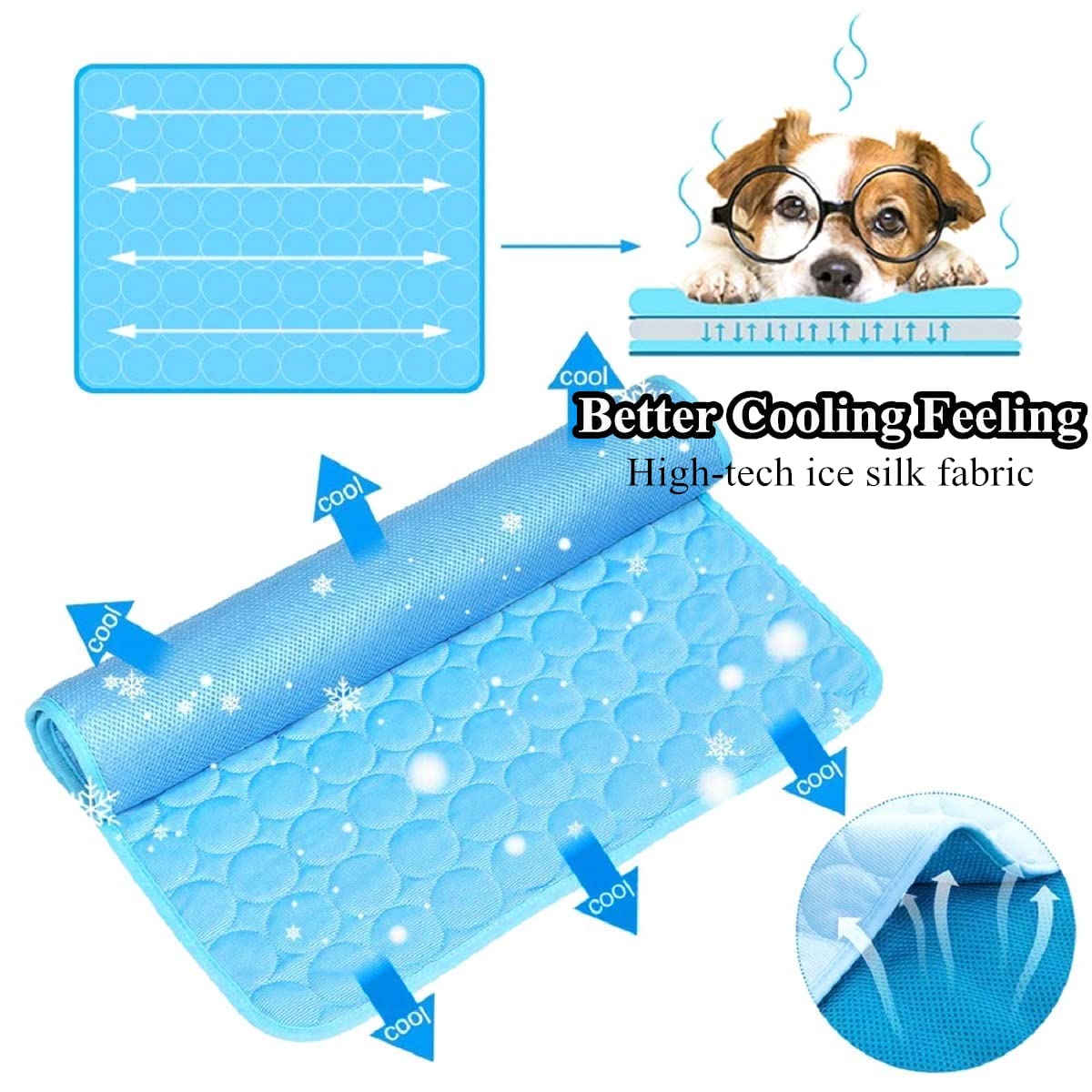 Our Ice Silk Pet Cooling Mat Will Help Your Pet Stay Cool, Give Your Love Pet A Comfortable And Cool . Outstanding Features Of Our Pet Cooling Pads 1. Premium Non-Toxic Cooling Fabric, Eco-Friendly,100% Safe And Non-Irritating For Animals, Adults & Kids. 2. Feel Cooling When Touch The Surface And This Kenn/El Mat Can Absorb Your Dog'S Body Heat, Relaxing And Soothing Them In Hot 3. The Self-Cooling Mat Can Be Directly Laid On The Floor, Sofa, Kennel, Bed For Dogs To Sleep And Feel Cool. Promote Better Sleep, Healthy Joint And Long-Lasting. 4.Easy To Clean: Ice Silk Pet Self-Cooling Pad Blanket Is A New Type Of High Technology Fabric:It Is Machine Washable, Lightweight ,Breathable, And Durable, Not Faded Or Deform After Multiple Cleaning. Specifications: Material: Ice Silk & Cotton & Mesh Fabric Color: Blue Size(Approx.): L:27.5 X 19.7 Inches,0.35Lb Xl:27.5 X 39.4 Inches, 0.6Lb Thickness:0.27 Inch Only This High Technology Fabric We Can Make In This Great Thickness,So We Think The Small One Is No Needed And Larger One Can Folded Easily We Put Your Satisfaction As Our Very Top Priority. Any Problem With Our Pet Cooling Pad For Dogs Cats, Please Contact Us And We Will Definitely Offer A Satisfactory Solution. . Add To Cart Now And Give Your Pet A Surprise!. . Package Include: 1 * Pet Cooling Mat For Dogs Cats.