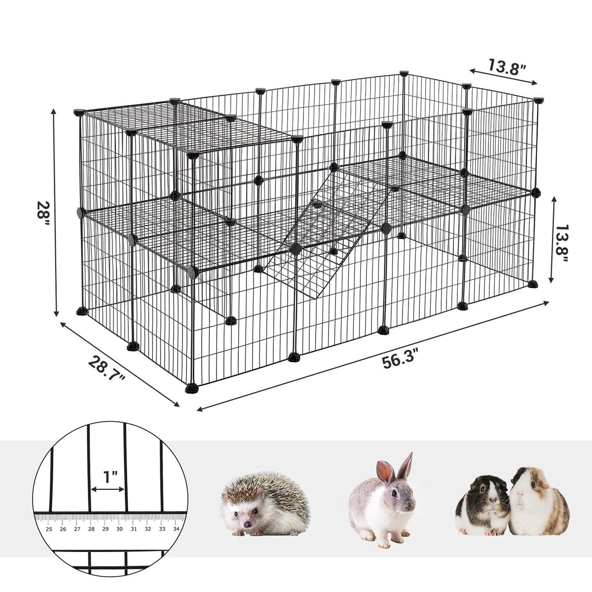 Songmics Pet Playpen, Small Animal Playpen, Rabbit Guinea Pig Cage, Zip Ties Included, Metal Wire Apartment-Style Two-Story Pet Premium Villa For Bunnies Puppies, Indoor Use, Black Ulpi02H