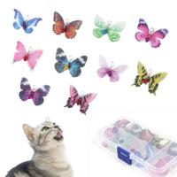 Q: Are the materials used in the butterfly cat toys safe for my cat?A: Yes, the butterfly cat toys are made from safe synthetic rubber materials, ensuring they are non-toxic and safe for your furry friend.