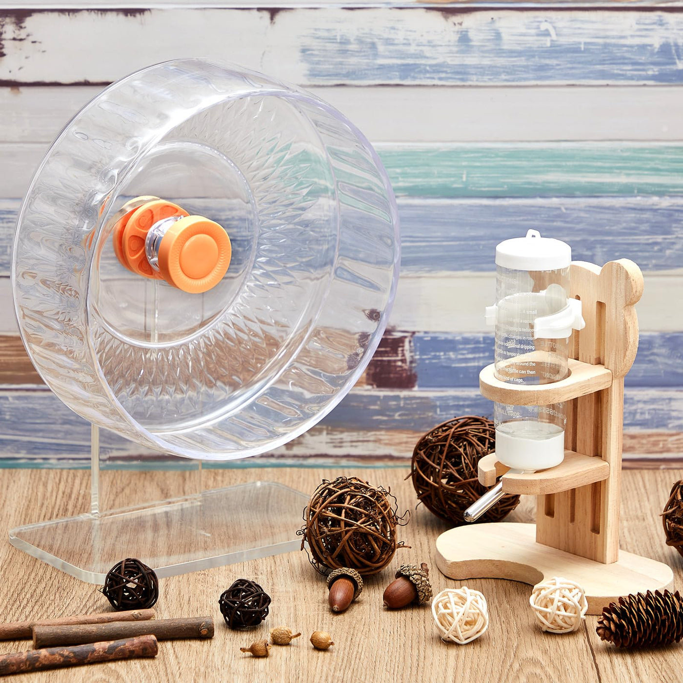 Features: This Product Uses A Low-Noise Guinea Pig Wheel To Ensure That You Can Sleep Safely While The Small Animals Can Also Have Fun. The Height Adjustable Water Bottle Rack Is Suitable For The Needs Of Different Small Animals. The Thoughtful Functions Are Very Suitable For Your Requirements Small Hamster Wheels Are Small Animal Toys That Can Help Your Hamster Get More Exercise And Develop Balance And Agility. Specifications: Material: Plastic And Wooden Color: Transparent Size: Hamster Wheel Is About 23Cm/9 Inches Hamster Water Bottle Holder Is About 7.8 X 6.5 Inches, Water Bottle Capacity Is About 4.2 Ounces Package Includes: 1 X Hamster Wheel 1 X Hamster Water Bottle Holder Set Notes: Manual Measurement, Please Allow Slight Errors On Size. The Color May Exist A Slight Difference Due To Different Screen Displays.