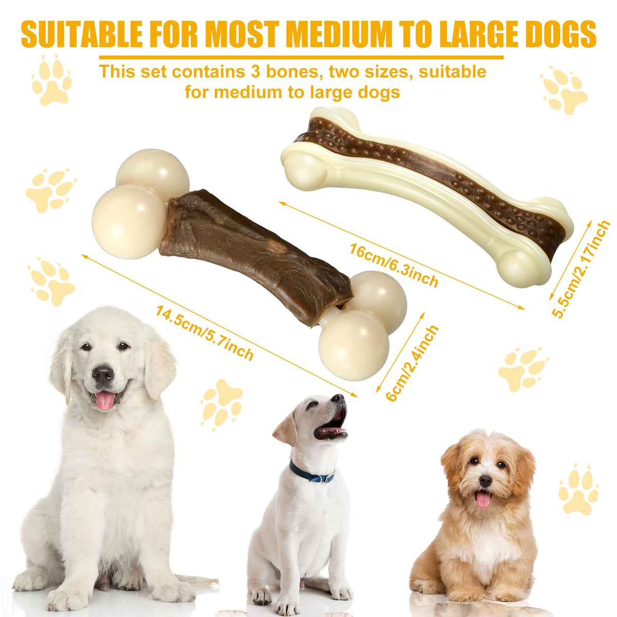 Sosation 3 Pack Chew Toys For Aggressive Chewers, Bone Toys Nylon Beef Flavor Dog Teething Toys For Large/Medium/Small Puppies B