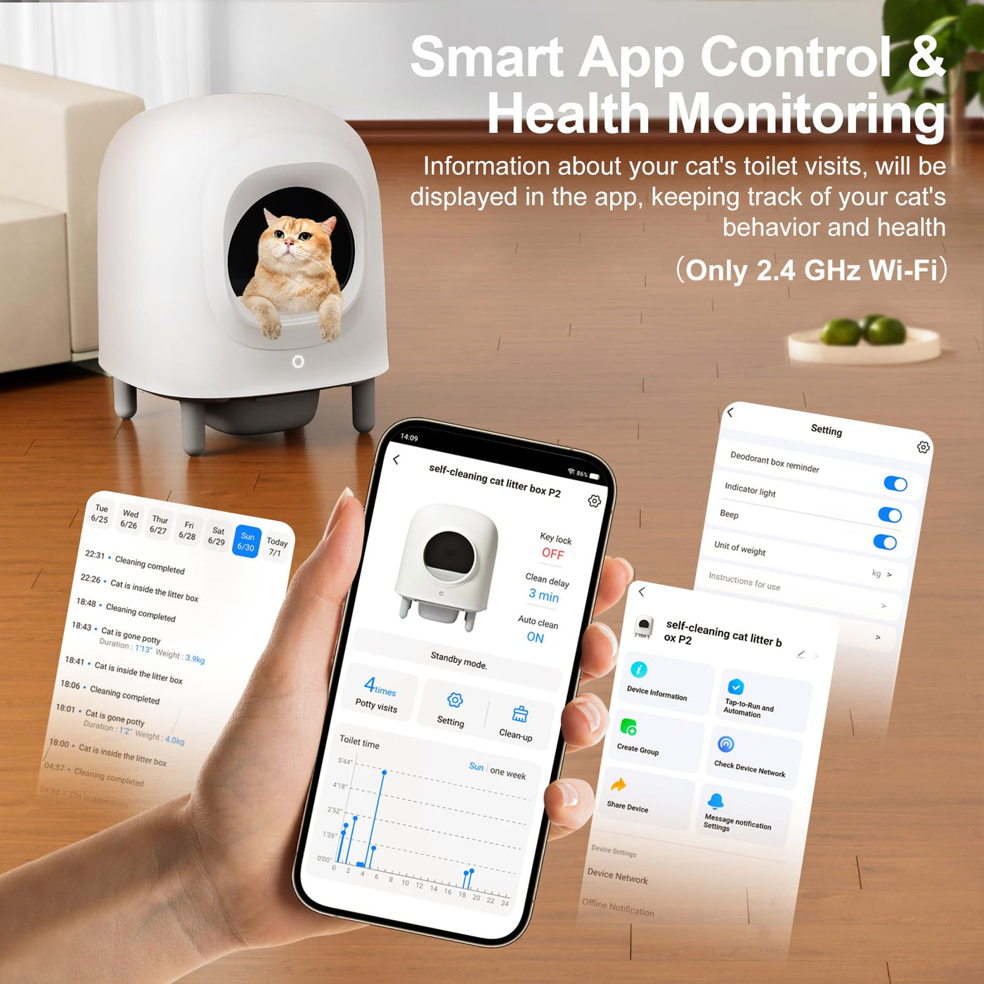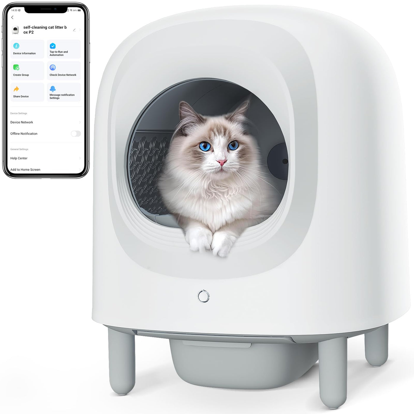 Sousia Self-Cleaning Cat Litter Box - 56L Extra Large Robot Automatic Cat Litter Box For Multi Cats With Safety Protection/Anti-
