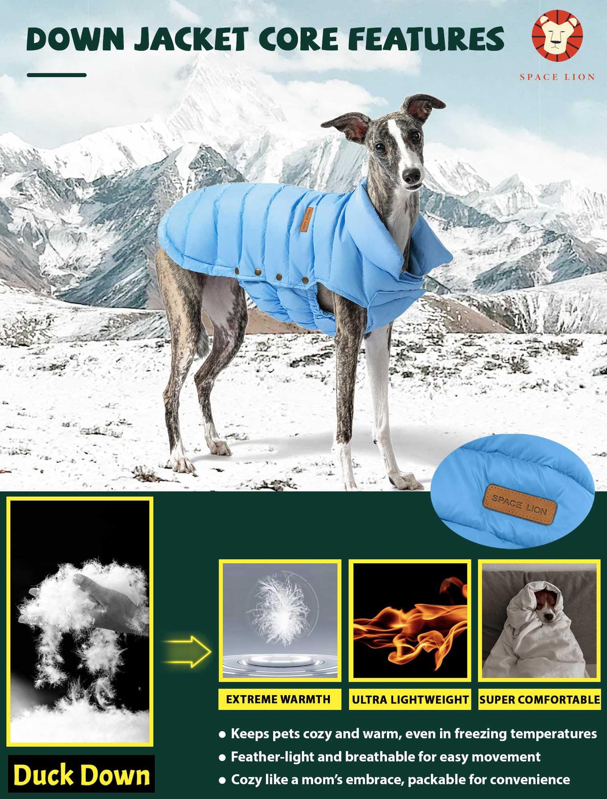 Space Lion Puffer Jacket, Down Winter Coat, Waterproof, Windproof, Lightweight Jacket, Adjustable Fit For Small To Large Dogs (B