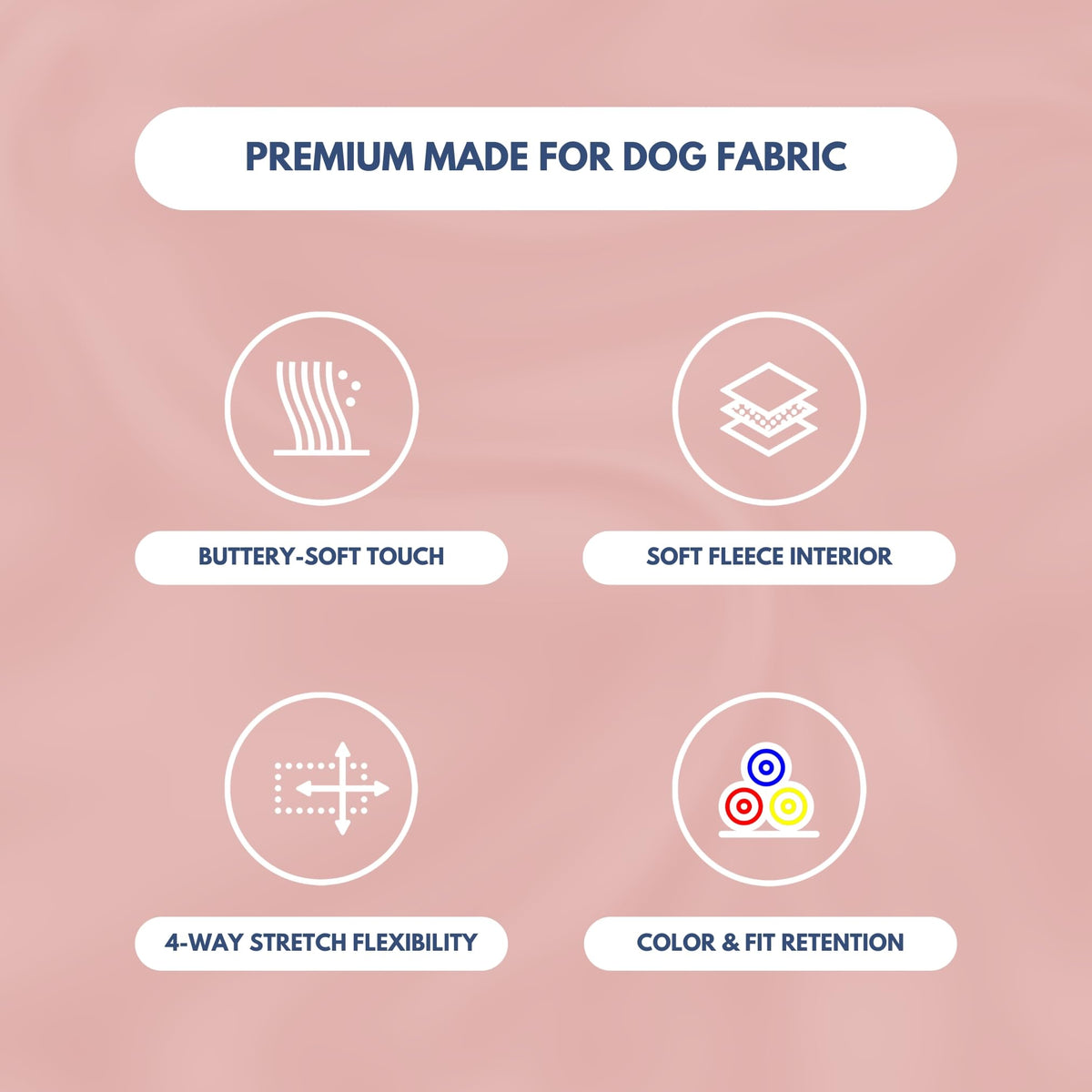Premium Quality Fabrics: Our innovative Butter-stretch fabric is soft durable and comes with a 4-way stretch offering optimal flexibility and comfort for dogs.