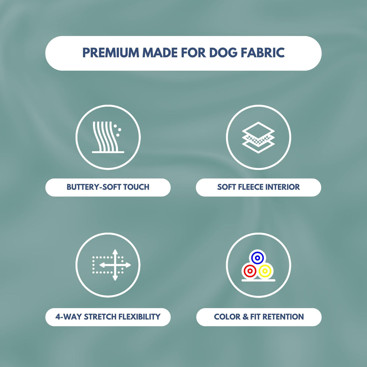 Premium Quality Fabrics: Our innovative Butter-stretch fabric is soft durable and comes with a 4-way stretch offering optimal flexibility and comfort for dogs.